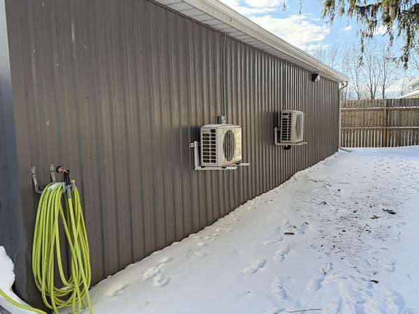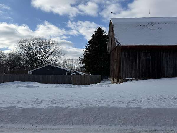 Lakeview-5 prime acres offering exceptional versatility and value. The gated, newly updated 3 pole buildings that are 30x54, 30x40 and 18x40, equipped with robust 600-amp electrical service, numerous furnaces, and mini-split systems, new concrete throughout with hallways connecting to each pole building. A section of one of the buildings includes a full kitchen and full bathroom. Others are ideal for heated storage, hobby, workshop use or any other wants or needs you may have. The buildings are protected with a power security gate. The property also includes an old gutted farmhouse with newer siding and windows that can be remodeled or removed to make way for a custom dream home. Beautiful setting with endless potential and opportunities. This property is two minutes from the highway but yet you feel like you are in the country!!!