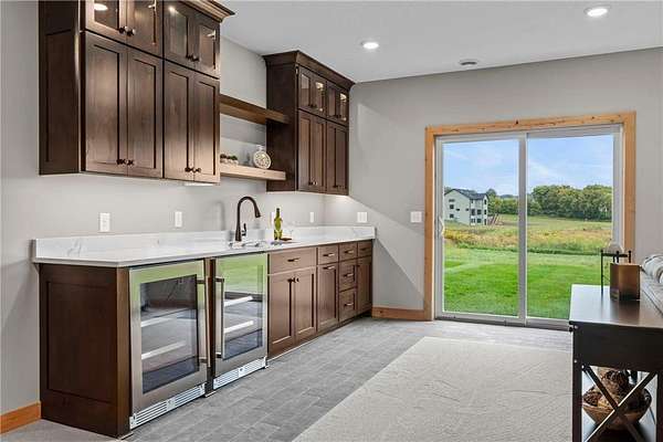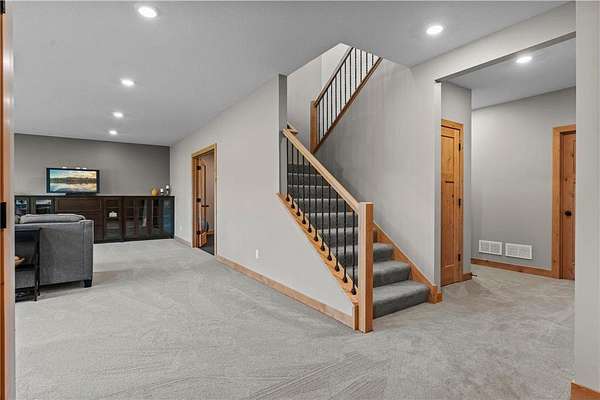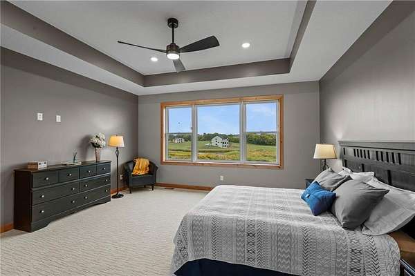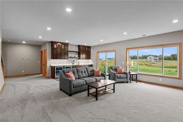 Another amazing creation from K Michael Homes, Amazed Acres!!! This lovely home boasts 4 bedrooms, 4 bathrooms, 6, count them 6 stall garage. It's practically a shouse. Over 1400 square feet of garage and toy storage. Tired of paying to store your toys elsewhere. In floor heat, insulated garage, sprinkler system, sod, 3800 finished square feet of living space to compliment the oversized garage. Bring it all under one roof. This main floor has all you need for daily living. Entering the front door you'll look across the home and immediately see the grand view through the vaulted wall of windows. Gourmet kitchen will be to your left and over looking your dining. All open concept. Gas fireplace, built in surround. This home has it all. Moving into the main floor primary suite, box vaulted, zero entry shower, huge shower. Walk through to the closet adjacent to your laundry room. Amazing. Anderson windows.....Home is completed and available to close!!!!