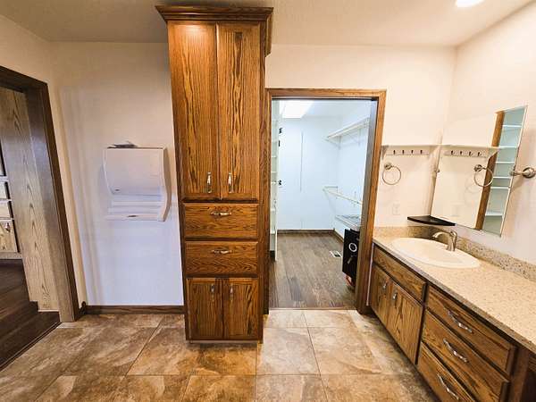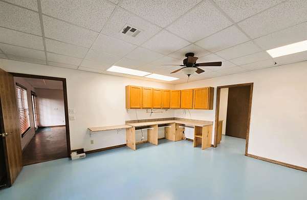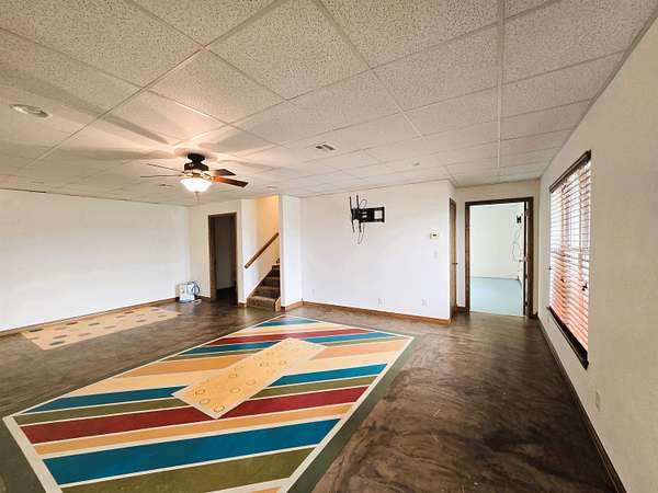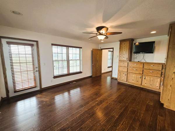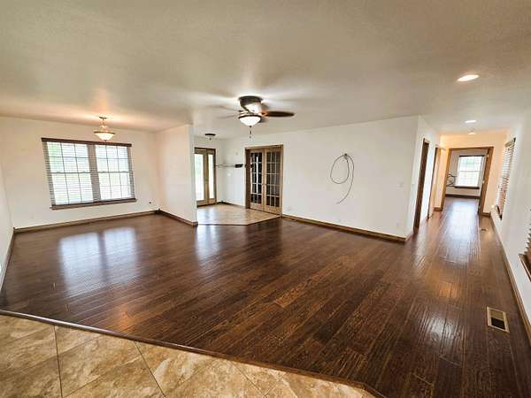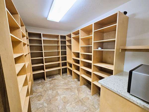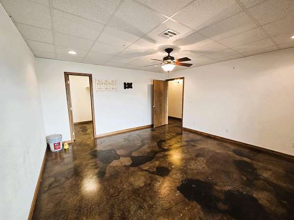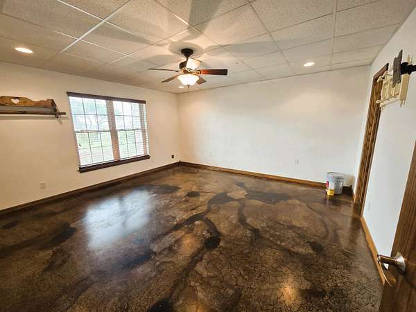 - Ceiling Fans, Concrete Flooring, Pantry, Shades/Blinds, Smoke Detector, Some Carpeting, Tile Flooring