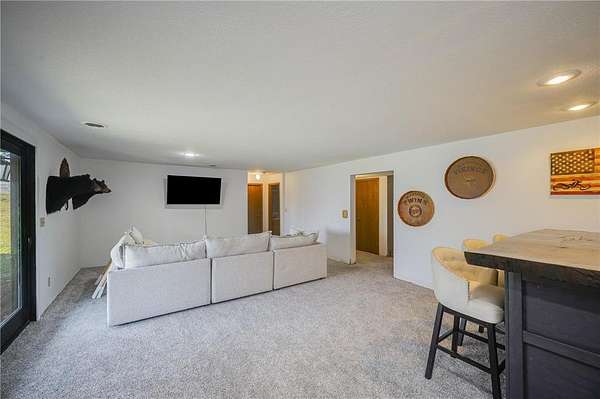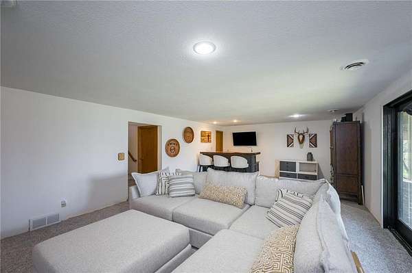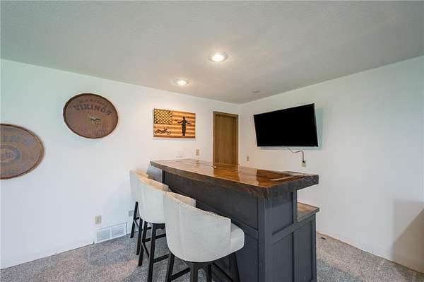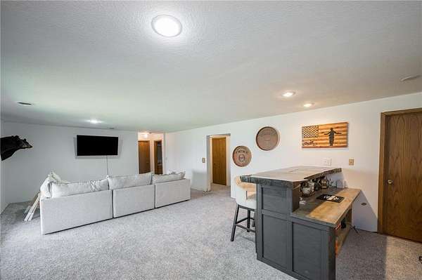The walkout lower level expands your living space with a spacious family room, new carpet, newly built custom bar, two additional bedrooms, a ¾ bath, and a generous cedar-lined storage closet.