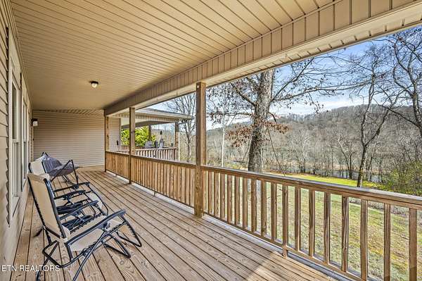 Escape to the serenity of the Holston River with this stunning custom-built 3 bed, 3 bath home nestled on 1.55 acres (survey on file). This fully furnished property offers an incredible opportunity for personal enjoyment in a peaceful, private setting. Step inside to find rich walnut floors throughout, accented by wide 36-inch walnut doors that highlight the home's custom craftsmanship. The interior has been freshly painted, and the kitchen includes a recently replaced dishwasher, making this home truly move-in ready. It also comes equipped with a SimpliSafe alarm system for peace of mind and added security. Best of all, it is sold fully furnished and ready for you to settle in and start enjoying right away. The wrap-around porch and freshly stained deck overlook a fully cleared backyard slope, offering stunning views down to the Holston River. Enjoy fishing, swimming, canoeing, and spotting year-round wildlife in this tranquil countryside setting. A spacious two-door garage easily fits three or more vehicles, includes a workstation, and is plumbed for a future room addition, offering versatility and space to grow. Whether you are looking for a primary residence or a relaxing getaway, this turnkey property delivers on all fronts, with privacy, natural beauty, and modern conveniences.