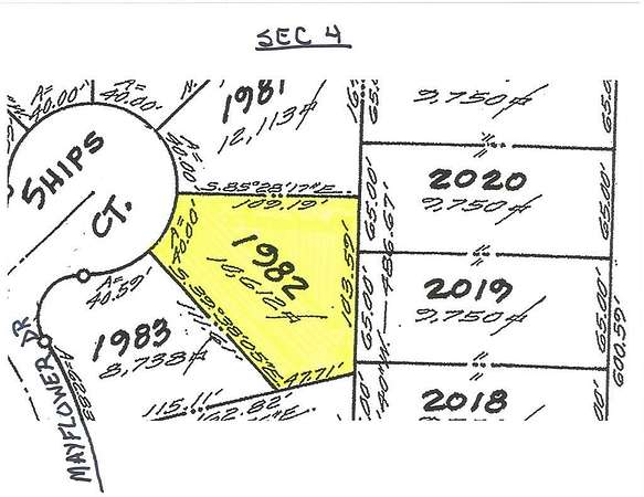 Main Captains Cove entrance on Captains Corridor, RT on Wheelhouse Road, RT on Mayflower, RT on Ships Ct. Lot on RT in middle of cul-de-sac look for flyer box.