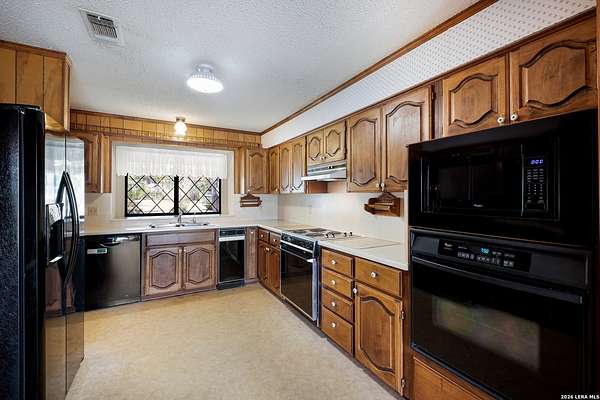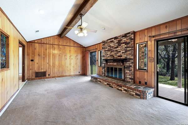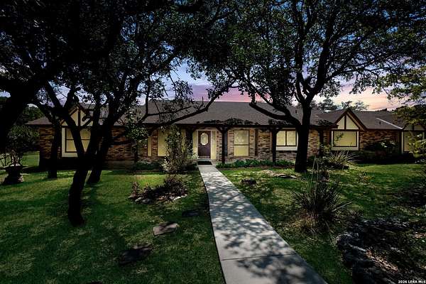 Nestled on 5.29 acres in the scenic Helotes Hill Country, this custom-built home offers space, privacy, and timeless character surrounded by mature oak trees. The home was built by the original owner Winston L. Wright, reflecting thoughtful craftsmanship and distinctive design elements that make it truly special. The interior of the home was thoughtfully designed by his wife Dorothy Wright, showcasing a well-preserved original design giving the property its unique character and warmth. A circular driveway welcomes you to the property and provides ample parking, while the expansive grounds offer a peaceful setting with plenty of room to enjoy the outdoors. The brick exterior and covered back patio create an inviting place to relax while taking in the natural surroundings. The entire property is fenced in with the front having an electric-remote gate made of stone/wrought iron. Inside, the home features generous living spaces, vaulted ceilings with exposed beams, custom woodwork, and two fireplaces (one in the living room and another in the primary bedroom) that add warmth and charm. Large windows and sliding glass doors bring in natural light and offer views of the surrounding acreage. Built-in cabinetry and original design details throughout the home highlight the care and craftsmanship that went into its construction. The property provides opportunities for outdoor enjoyment, gardening, or simply appreciating the quiet Hill Country setting, all with convenient access to shopping, dining, and everyday conveniences in Helotes and San Antonio. This property offers a rare opportunity to own a custom home on acreage in the Texas Hill Country. Schedule a showing today! Open House on Saturday, April 4, 2026 from 11am - 2pm