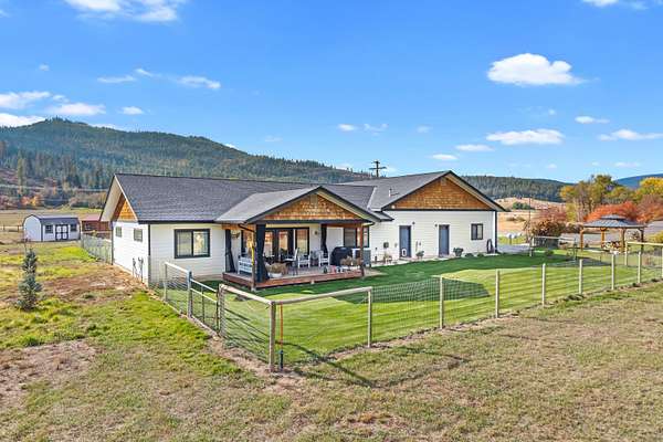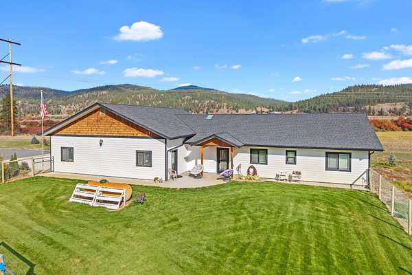 Est $3,234/moWelcome to this stunning 2022 Craftsman built home on 33 beautiful acres centrally located in between Chewelah and Colville. Attached 1,600 sqft, 2 car garage with laundry room, full bathroom and a workout room. Dehumidifier installed underneath home with backup available, water filter, triple pane windows, soft close cupboards, high end appliances, covered porch with screen, 10x20 shed and a fenced front and back yard. Beautiful mountain views along with the Colville River flowing through the property make this home a must see. Give me a call today for a showing!