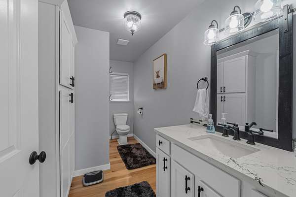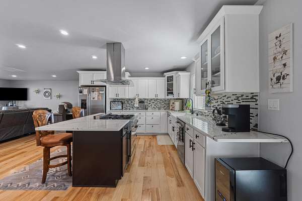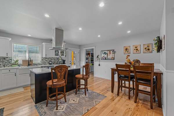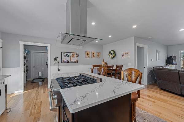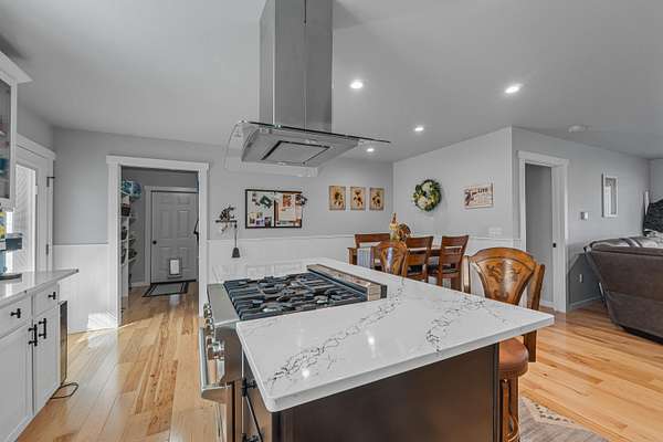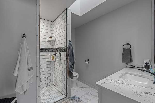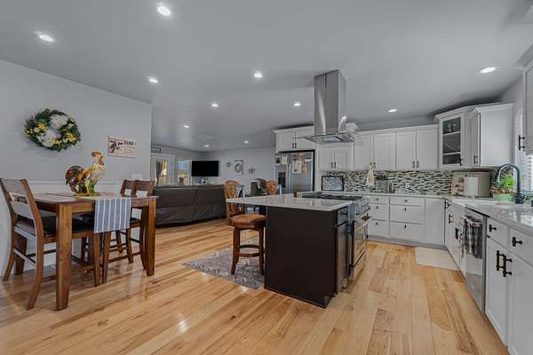 - Island, Sky Light, Tile Floors, Walk-In Closet, Wood Floors