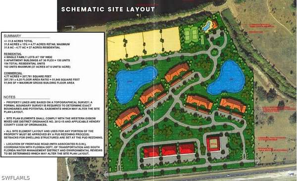 A DEVELOPER/INVESTOR'S DREAM PROPERTY boasting 1100+/- FT on State Road 80 just east of the City of LaBelle, FL and 900+/- FT on the intracoastal waterway, the Caloosahatchee River segment. This 31.47 acres is currently zoned agricultural with the benefit of an agricultural exemption for low taxes while holding for development. State Road 80 runs from the east coast to the west coast with I-75 only 30+/- miles west, just outside of downtown Fort Myers, FL. Municipal water and sewer line availability must be checked with Port LaBelle Utilities, owned by Hendry County. The Future Land Use of the subject property is Western Oxbow Mixed Use which allows commercial, not only on SR 80, but would be encouraged on the river in the form of marinas, dining, accommodations, and recreational uses. Residential uses are allowed for 186 units with more a possibility. The Caloosahatchee River is situated between two locks for safety and is considered to be a "Safe Haven" for boaters during hurricanes. LaBelle is a great central yet rural location for retirees and families. THIS IS THE PATH OF PROGRESS!