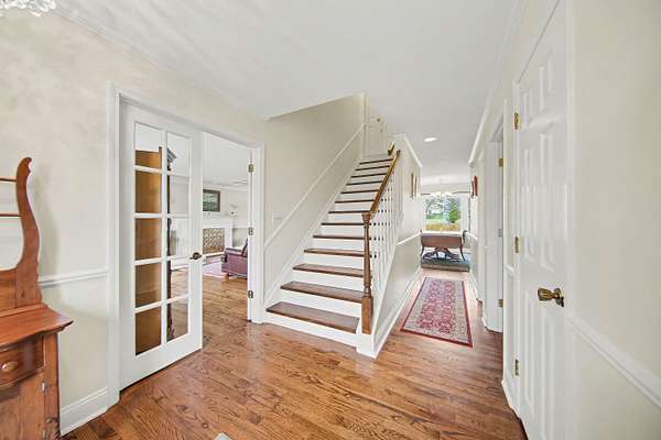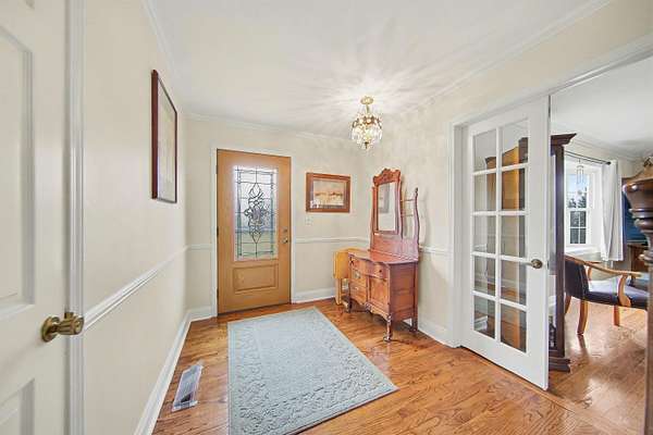 Get ready to enjoy this peaceful country setting and the welcoming feel of a quiet rural neighborhood, with room to relax, garden, and take in the open surroundings. Impeccably maintained Cape Cod set on 1.5 acres, offering a comfortable blend of classic charm and thoughtful updates. The main level features a spacious primary suite with an en suite bath, walk-in closet, walk-in shower, and dual-sink vanity. The inviting living room is filled with natural light from the bay windows and showcases French doors, built-in bookcases, a cozy fireplace, and gleaming hardwood floors. The beautifully updated kitchen features custom hickory cabinetry, a farmhouse sink, and granite countertops--ideal for both everyday living and entertaining. A doorwall leads to a patio area shaded by an electric awning, overlooking a fenced backyard with mature trees and colorful perennial gardens. Upstairs, you'll find two nicely sized bedrooms with large closets, along with a full bathroom offering a dual-sink vanity and tub/shower. Additional living space includes a quaint guest apartment above the garage, complete with a fourth bedroom and full bath--perfect for visitors, multigenerational living, or a private home office setup. Notable updates include the furnace, A/C, roof, well, Wallside windows, and a generator hookup for added peace of mind. Positively ready to move in and enjoy the coming summer months living close to the charming Village of Manchester, with its shops, eateries, parades, festivals, fair and summer Farmer's market.