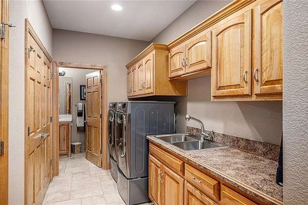 The Ranch home features 4 spacious bedrooms & 5 full bathrooms, a primary suite with vaulted ceiling and spa-like whirlpool tub. The home has vaulted ceilings, a formal dining room, private TV room, and a beautiful kitchen upstairs and a smaller kitchen downstairs. Premium solid hickory cabinetry, trim, and interior doors throughout. The HVAC system is efficient climate control with geothermal heating, radiant in-floor heat, LP gas furnace, and multiple A/C systems. Other features include 13 solar tubes for natural daylight, plus a fireplace, upgraded high-efficiency water softener, and Bosh electric boiler. The roof is a Durable composition roof (2 years old) with 5 new solar roof fans and R49 attic insulation in the attic. Entertain for hours enjoying the patio space with open and covered sections, a custom firepit, and concrete pathways finished for style and durability. Anderson casement windows throughout