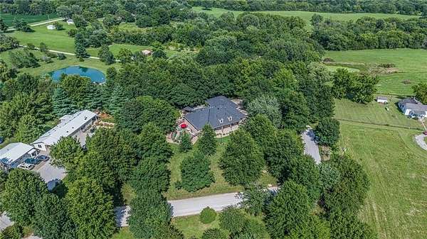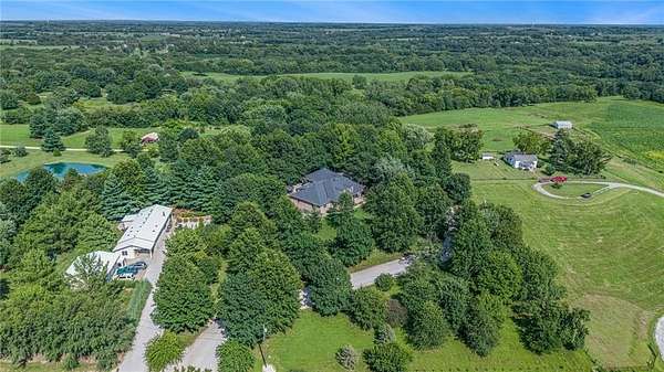 A stunning, custom-built all-brick ranch estate nestled on nearly 4 acres in Platte County. The meticulously maintained property offers over 4,500 square feet of finished living space, and a suite of impressive outbuildings designed for both lifestyle and utility.