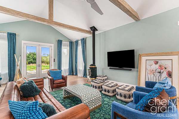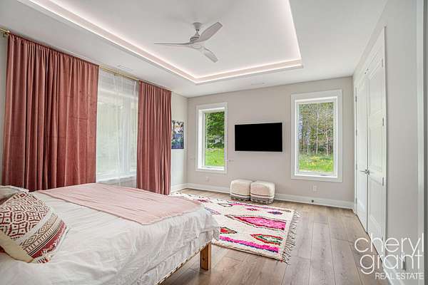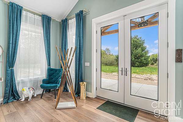Escape to West Michigan's Art Coast with this modern farmhouse retreat on 2.58 acres, including meadows, chestnut and groves. Just minutes from Saugatuck, Douglas, and Lake Michigan, this 5,400 sq. ft. single-level residence offers a rare blend of luxury, sustainability, and privacy. Designed for entertaining and relaxation, the home features 10' ceilings, 8' doors, a Thermador kitchen suite, and a floor plan that sleeps 8 across four bedrooms, including two gorgeous en suites and 2 bedroom suite. The movie room and library can flex into additional bedrooms or creative spaces. Host guests for weekends by the 26' x 10' in-ground pool with ebony blue finish, automatic cover, and salt/UV/Ozone purification, then challenge them to a game on the croquet or bocce courts while enjoying panoramic sunset views over the meadows. This is a home engineered for modern living, with solar power, EV charging capability, 400-amp service, and a back-up generator ensuring effortless sustainability. The 3-bay heated garage with tandem spaces, library, full pantry with LG washtower, and dedicated laundry with Speed Queen appliances reflect thoughtful design at every turn. Outdoors, enjoy the bounty of wild blueberries, blackberries, and asparagus, along with a secure dog run and play area. Whether envisioned as a private second home, income-generating rental, or weekend gathering place for friends and family, this property offers the perfect canvas for a luxury Michigan lifestyle with unmatched privacy and natural beauty.