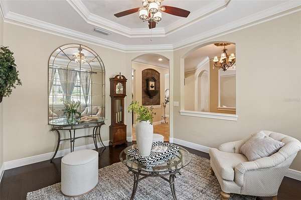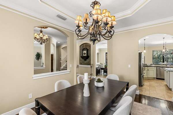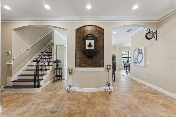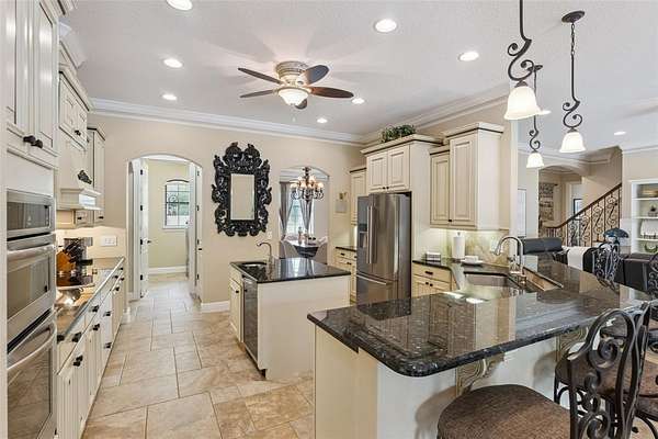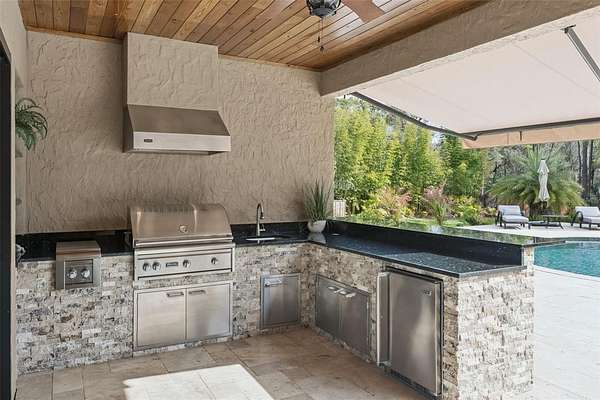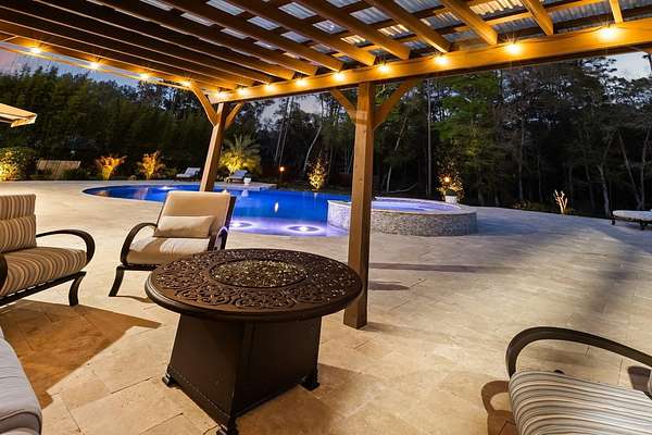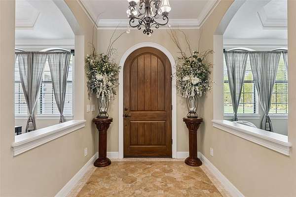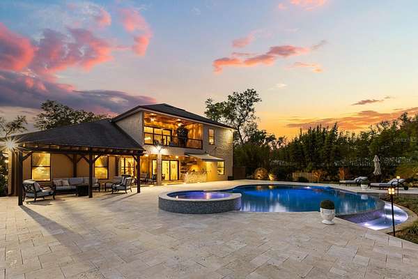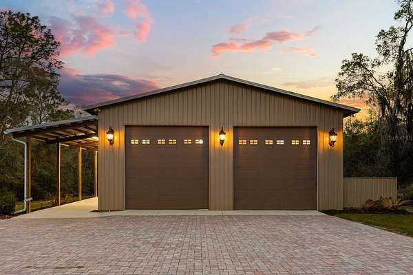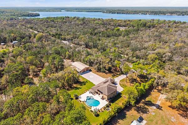 Behind a private double gated entrance, this extraordinary 12.5 acre estate offers a rare blend of privacy, luxury, and natural beauty. Surrounded by expansive land and scenic views, the property offers potential for agricultural zoning, creating flexibility for equestrian pursuits, recreation, or a private retreat. The five bedroom, four and a half bath residence was thoughtfully designed for both everyday living and entertaining. The home features foam insulation for energy efficiency, double crown molding throughout, a gourmet kitchen with breakfast nook, formal dining and living rooms, a spacious game room, flex space, and a room ideal for an office or theater. CAT6 and RG6 network wiring is installed throughout the home for connectivity in every room. The primary suite offers a fireplace for added comfort and the ensuite is a luxurious retreat with a spa inspired bath featuring a jetted soaking tub, double vanities and a ornate chandelier. Additional features include Anderson hurricane sliding glass doors, and reinforced storage space beneath the stairs designed for severe weather protection. Expansive upstairs and downstairs patios feature beautiful pine tongue and groove ceilings overlooking the tranquil landscape. A standout feature of the property is the impressive 3,000 square foot BARN BUILT IN 2020; The barn includes a loft, insulated private office with separate entrance, FULL BATHROOM,PLUMBING, ELECTRICAL, MINI SPLIT SYSTEMS, EPOXY FLOORING, and extensive outlets throughout. Two 14 by 14 electric garage doors allow easy access for large boats, vehicles, or equipment. The barn is currently used for boat and equipment storage but offers flexibility for a workshop, collector garage, equestrian use, event space, or potential wedding venue. It is accessible from the main front gate as well as a service gate off Deerfoot Road for convenient vendor access. Outdoor living rivals that of a private resort. The infinity edge pool flows into a spacious spa that seats up to ten guests, with bubblers, fountains, and smart technology controlling lighting and temperature from your phone. The expansive travertine entertaining area includes a pergola with gas heater, outdoor rain shower, and a fully equipped summer kitchen with Viking appliances including a rotisserie grill, side burners, refrigerator, stainless sink, granite countertops, retractable SunPro awning, and pop up electrical outlets. The spa heater, grill, side burners, and primary bedroom fireplace are fueled by a 1,000 gallon underground propane tank. Professional landscaping, tree up lighting, irrigation, bamboo privacy hedging, composite fencing, hurricane fencing and a Viking powered front gate provide both beauty and security. The property also includes a Bison pump, ensuring access to water even during a power outage. Wildlife is commonly seen throughout the property like deer and turkeys, and directly across the street is the beautiful 211 acre Lake Beresford Park with miles of walking and biking trails connecting to Blue Spring State Park. Despite its private setting, the property is just minutes from Country Club Corners Shopping Center, I-4, Stetson University, downtown DeLand, and convenient access to Daytona Beach, Ormond Beach, and Orlando. A truly exceptional estate offering luxury, privacy, and lifestyle rarely found in Central Florida.