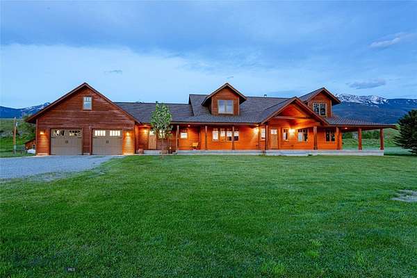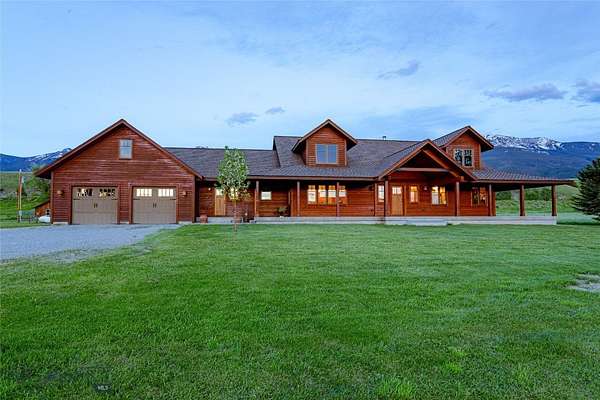 BRING YOUR HORSES to the perfect Lifestyle Ranch in the heart of Paradise Valley. 44.16 lush acres with first water rights from Strawberry Creek that irrigate a productive 35-acre hay field yielding up to 5 tons per acre - All wheel lines and irrigation equipment conveys with the property. The CUSTOM DESIGNED 3-bedroom, 2.5-bath residence offers a rare blend of comfort, craftsmanship, and breathtaking scenery. In winter, gather around the wood-burning fireplace and take in the sweeping views of the Absaroka Mountains, perfectly framed by the living room's expansive wall of windows. The thoughtfully designed main level features a spacious primary suite, formal dining room, inviting living area, well-appointed kitchen, and laundry room. Upstairs, you'll find two additional bedrooms, a full bath, and a loft, bringing the finished living space to approximately 3,500 square feet. A 1,772-square-foot unfinished basement and a bonus room above the garage offer ample potential for future expansion. Outside, the property is equally impressive. A 28' x 40' workshop with a 12' x 26' lean-to and a 35' x 45' post-and-beam barn provide versatile space for livestock, hay and equipment storage, or hobbies. Wildlife lovers will appreciate the seasonal visits from elk herds with as many as 300 elk. And when summer arrives, the wrap-around covered porch becomes the perfect retreat-offering shade, serenity, and a front-row seat to Montana's natural beauty. LOCATION is less than 30 minutes to Livingston, 40 minutes to Yellowstone National Park, and 10 minutes to Chico Hot Springs Resort, Sage Lodge, Yellowstone River fishing access, and all the amenities of Emigrant, MT. TONS OF WATER, SPECTACULAR VIEWS, FANTACTIC LOCATION - call for your appointment today!