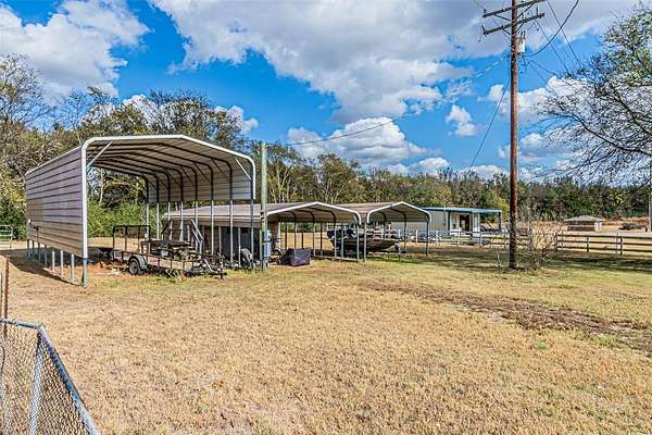 Charming East Texas retreat on 3.459 unrestricted acres, just minutes from Lake Fork and Lake Bob Sandlin. This property offers a 3-bedroom, 3-bath home with an open-concept living and kitchen area featuring granite counters, plus recent updates including a water heater (2023), gutters (2024), and AC unit (2024). Spectrum cable and internet are already set up with a dedicated line making connectivity a breeze. Enjoy lazy afternoons on the inviting front porch or retreat to one of two master suites, one of which includes a cozy sitting area and jetted bathtub with a view of the property for the ultimate relaxation. The land is beautifully set up with pipe fencing across the front and an impressive collection of outbuildings, including a wood working shed and two shops, with electricity and perfect for all your DIY projects. The 30x40 metal building, built in 2024, with electricity and 2 overhead bay doors offers endless possibilities whether you're looking for extra storage or additional work space. There is also an RV carport and a small lean-to barn ideal for horses. With three separate electric meters--for the home, RV, and red barn--this property is perfect for those needing space for equipment, hobbies, animals, or multiple living setups. Winnsboro is a peaceful, quiet community with room to grow and endless possibilities.