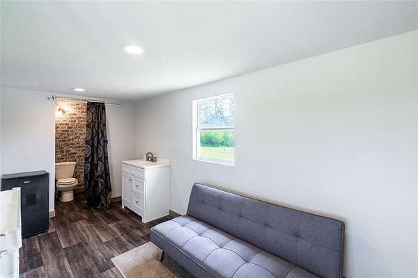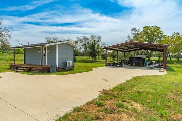 Est $1,595/mo10 acres with 4 ponds and all utilities! There is a slab with an awning that could easily be turned into a shop. Small one room trailer with a bathroom but no shower or tub. It does have electric and air. Ponds are stocked and fruit trees are planted! This little farm is perfect for you to build or raise some livestock. No restrictions!