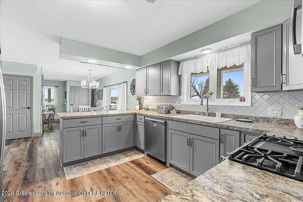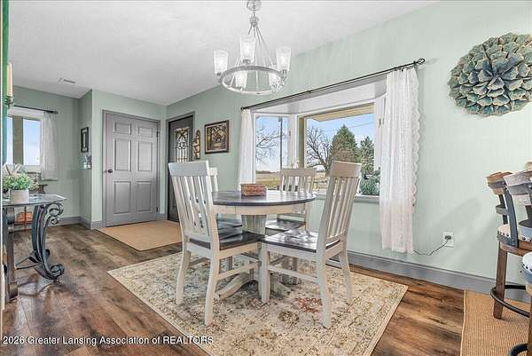 Escape to your own private slice of paradise with this stunning country retreat, nestled on over an acre of beautifully scenic land. If you've been searching for peace, privacy, and breathtaking views this is it. From the moment you arrive, you'll be captivated by the serene setting, where wide-open skies and natural beauty surround you. With no close neighbors in sight, this property offers the kind of quiet, secluded lifestyle that's hard to find. The home features 5 spacious bedrooms and 3 bathrooms, with over 2,000 square feet of comfortable living space. Inside, you're welcomed by a bright living room with vaulted ceilings, creating an open and airy feel. The updated kitchen is ideal for everyday living and entertaining, complete with an eat-in area and a separate formal dining space. The main-floor primary suite offers both convenience and privacy with its own attached bath, along with a first-floor laundry room for added ease. Upstairs, you'll find four additional bedrooms and a full bath, perfect for family, guests, or a home office setup. Major updates have already been completed, including newer roof, windows, siding, paint, and a new pressure tank, providing peace of mind for years to come. Step outside and take in the true highlight, a stunning wraparound porch where you can relax, unwind, and soak in the incredible views. Whether enjoying your morning coffee or evening sunsets, this space is simply unmatched. Additional features include a 30x40 pole barn, perfect for storage, hobbies, or all your outdoor equipment. If you've been dreaming of a peaceful escape with unmatched scenery and total privacy, this property delivers.