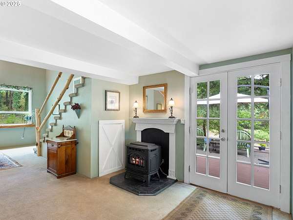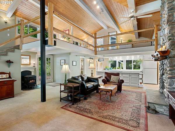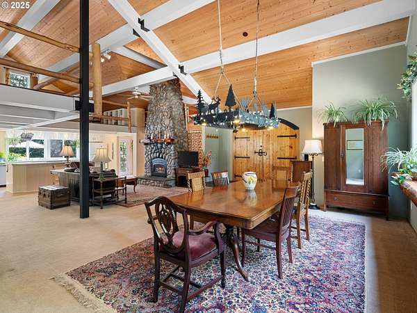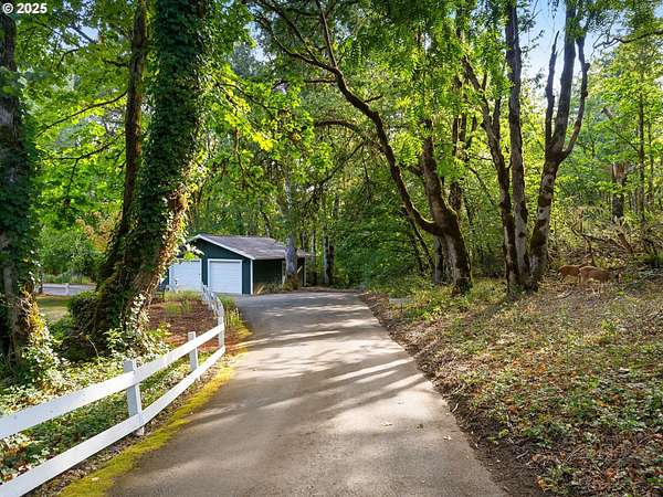 Peaceful Retreat on 7+ Acres in Meadow View Estates.Nestled on over seven acres, this nearly 3,000+/- sq ft home offers privacy, charm, and beautiful views of trees and pastureland. A tree-lined driveway leads to the home, setting the tone for the serene lifestyle that awaits. Step inside to a warm, cabin-style interior featuring a central stone fireplace, rich wood accents, and expansive windows that frame the natural surroundings.The main level includes 2 bedrooms, 1 bath, and a cozy sitting area-perfect for reading or enjoying quiet moments. Upstairs, the oversized primary suite features a spacious bathroom, an inviting sitting room, and beautiful new balcony to enjoy your view, creating a private sanctuary within the home. A charming loft offers a flexible bonus space-whether as a cozy crafting nook or a dream haven.The open kitchen, complete with ample cabinetry, a central island, and abundant natural light, flows seamlessly into the dining and living areas-ideal for entertaining or family gatherings.Outside, beautifully landscaped grounds offer expansive decks for outdoor living, a fenced garden, mature trees, and open lawn space. Additional property features include a chicken coop, wood storage, a small barn, and a detached 2-car garage with a finished bonus room-perfect for an office, studio, or guest space.This property is a rare combination of privacy, functionality, and rustic charm, offering a peaceful retreat just minutes from the amenities of McMinnville.