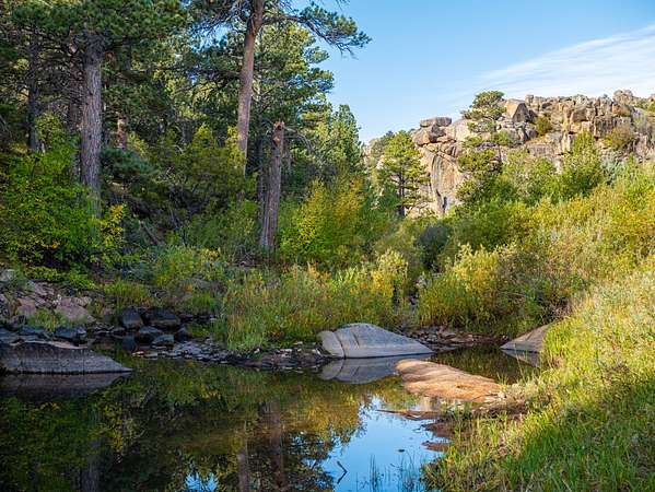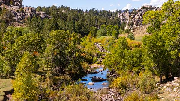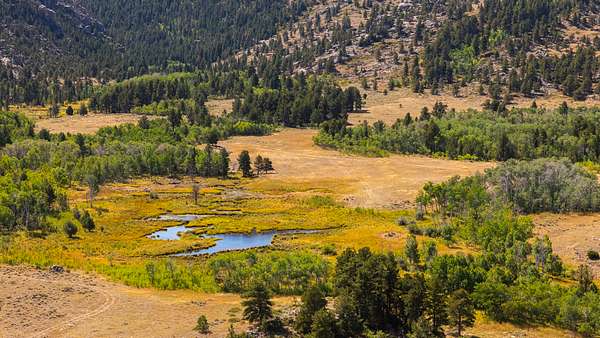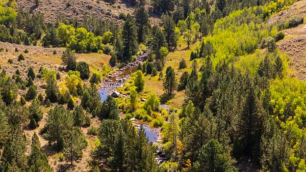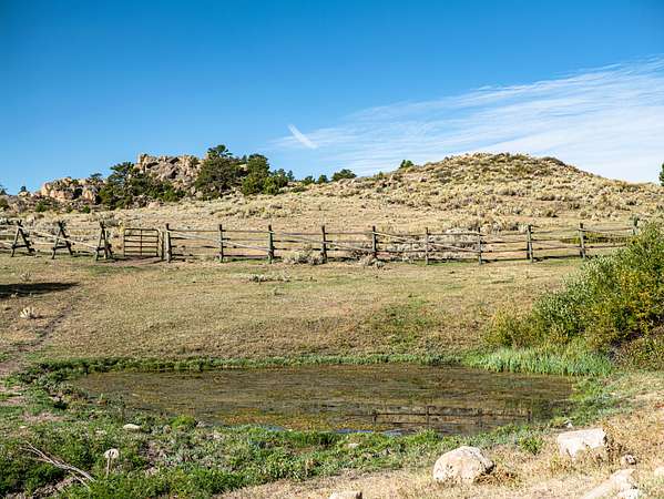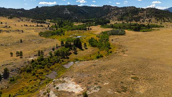 As you enter the ranch, rolling meadows bisected by year around streams open to sub-irrigated valleys leading into the dark timber. Resident beavers control the water as it flows from the mountains creating dozens of ponds and excellent habitat for wildlife. The sod base is lush and thick allowing for excellent animal growth, both domestic and wild. Large rock outcropping line the canyon walls creating a very picturesque landscape. Historic cabins throughout the property have been remodeled to maintain the character of the past while providing shelter. Several fishing ponds are scattered throughout the ranch which are also frequented by waterfowl.