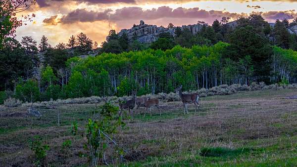 Antelope thrive on the plateau flats while finding shelter near the aspen groves. Quality mule deer and whitetail deer can be seen frequently and the herds seem to grow larger each year.