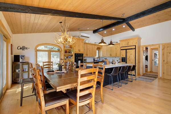 Three homes just off the county road offer abundant living space. One is newly remodeled and updated and a second is in process now. Additional living quarters for a ranch hand is tied into one of the buildings. A historic barn has been restored as well as the horse stalls and riding arena. New metal buildings have been built to provide heated storage for all the equipment. The corrals and fencing have all been updated and are continually being improved. A private solar system has been installed and it has reduced the monthly cost of electricity drastically.
