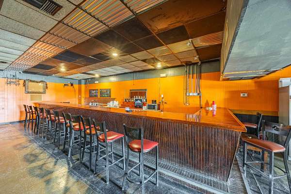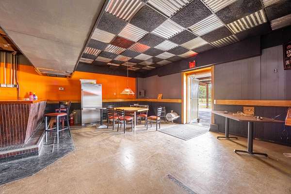 3,750 sq ft commercial building suitable for storage, office, or customizable workspace. Features include a full bar area, two handicap-accessible restrooms, interior storage space that can also function as a small office, and a large rear awning. Ample parking available. Landlord covers water and gas. Tenant has flexibility to make the space their own.