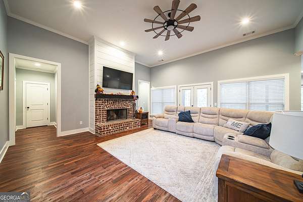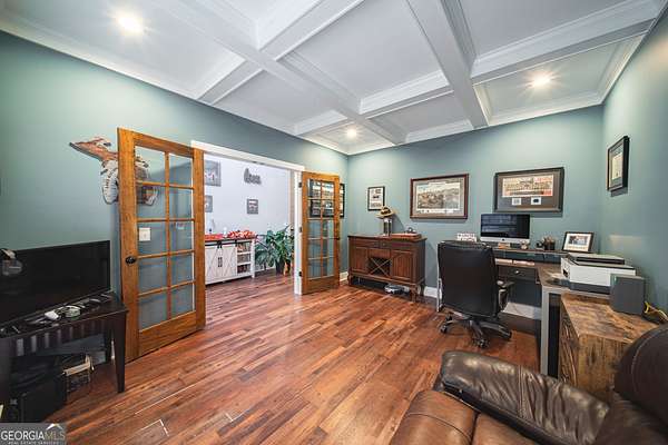 Discover this stunning 5-bedroom, 4.5-bath home set on 6.89 serene acres-a perfect blend of privacy, luxury, and convenience. Located just minutes from Columbus, Ft. Benning, Callaway Gardens, F.D. Roosevelt State Park, and top-rated Harris County schools, this property offers exceptional living both inside and out. Interior Features: Custom gourmet kitchen with high-end finishes, large pantry, and breakfast area Inviting brick fireplace with a beautiful wood mantle Elegant office with coffered ceilings-ideal for remote work or study Spacious exercise/media room for fitness or entertainment Convenient wet bar, perfect for hosting and entertaining Tankless water heater for energy efficiency and endless hot water Exterior & Outdoor Living: Gorgeous in-ground saltwater pool for relaxing and entertaining Expansive yard with room to roam and enjoy the outdoors Two-car garage with ample storage space This home combines timeless craftsmanship with modern comfort-perfect for families, entertainers, or anyone seeking a peaceful retreat with quick access to city amenities.