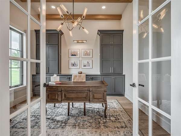 High-end finishes are found throughout the home, rich wood-look tile floors, custom cabinetry, designer lighting, and smart use of every square foot. The dedicated home gym overlooks the stunning back patio, and the separate home office features impressive built-ins that make working from home feel effortless.
