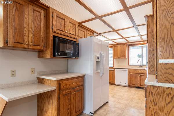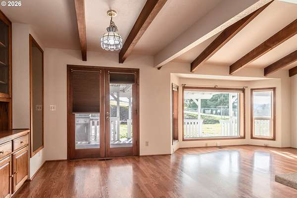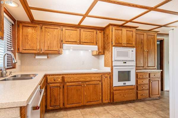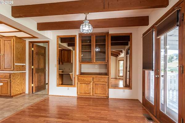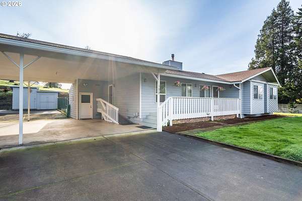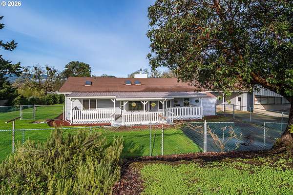 Peaceful 2-Acre Setting in an Excellent Location!!Discover a well-cared-for single-level home nestled on a private 2-acre parcel, offering the perfect blend of comfort, functionality, and serene outdoor living. Warm beamed ceilings, oak accents, and thoughtful built-ins create a welcoming interior filled with natural light. The kitchen features solid-surface countertops and plenty of workspace, while an additional mud room or hobby room adds valuable flexibility for storage or creative projects.Enjoy year-round outdoor living with covered decks in both the front and back, ideal for relaxing or entertaining. The property is designed for convenience and versatility, offering three storage rooms, RV covered parking, two garden areas, and abundant parking options including two garages and two carports. A fenced backyard provides a secure space for pets or play.This is a rare opportunity to own a beautifully maintained home on acreage in a highly desirable location-private, practical, and ready to enjoy. Close to town, Rivers & Parks & Country Club.