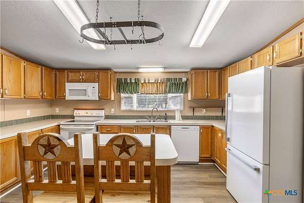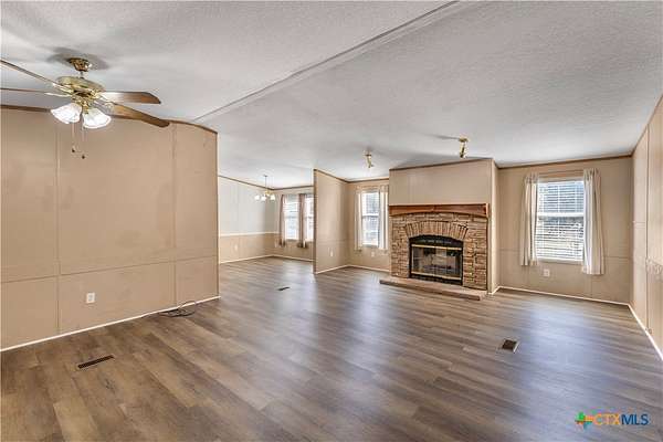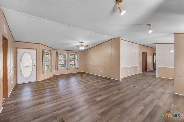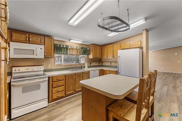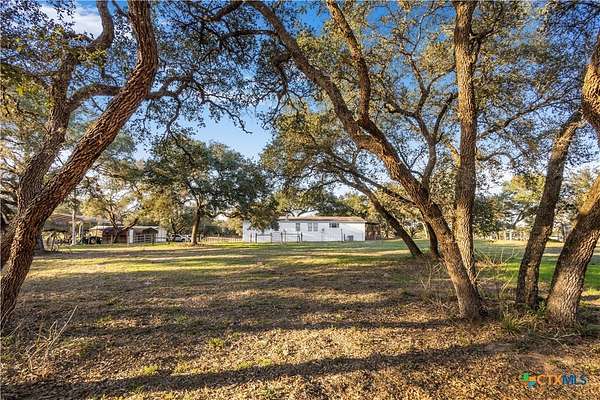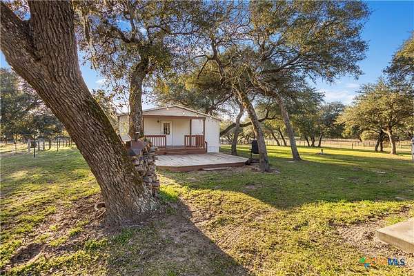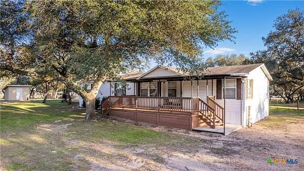 Escape to the peace of the countryside with this 5.29-acre property just outside Hallettsville in the desirable Vienna area. In this beautiful country setting, the land is covered in an abundance of mature oak trees that provide exceptional shade and natural beauty throughout the property. With no restrictions, perimeter fencing, and a pond, this versatile acreage is ideal for livestock, local stock show families, or anyone looking to enjoy rural living while still being close to town. The property features a 3-bedroom, 2-bath manufactured home designed for everyday comfortable living. Inside, you'll find a spacious living room with a cozy wood-burning fireplace that can be enjoyed as one large gathering space or arranged for multiple uses. New waterproof vinyl plank flooring has been installed in the living room, dining area, kitchen, and laundry room, along with new sinks in both bathrooms. The primary suite offers a double vanity plus his-and-hers walk-in closets for plenty of storage. Outdoor living is just as inviting, with a large front porch ready for rocking chairs and a relaxing evening, as well as a side covered porch and additional deck ideal for entertaining. A storage building with electricity provides excellent space for hobbies, a workshop, or projects, and a square concrete slab is poured ready for the buyer's imagination. If you've been looking for shade trees, usable acreage, and country charm with room to grow - this property is a must see!