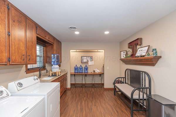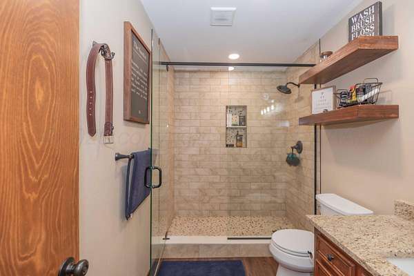 Experience modern yet peaceful country living on 3.6 acres with a large 106X50 shop. Featuring 4 bedrooms, 3 bathrooms, and a large basement that can be used as a second living area or 4th bedroom (not included in square footage), this home was completely redesigned inside and out with high attention to detail. Highlights include a custom kitchen with granite countertops, high-end appliances, and custom bathrooms. The spacious back patio boasts a large gable, outdoor kitchen, and tall privacy fence, while a beautiful front pergola enhances outdoor living. Additional features: newer roof (2022), well (2023), new flooring and paint, custom fireplace, and oversized laundry. The shop includes offices, kitchen, bathroom, workspace, and carport parking. Option to purchase house & 1 acre only.