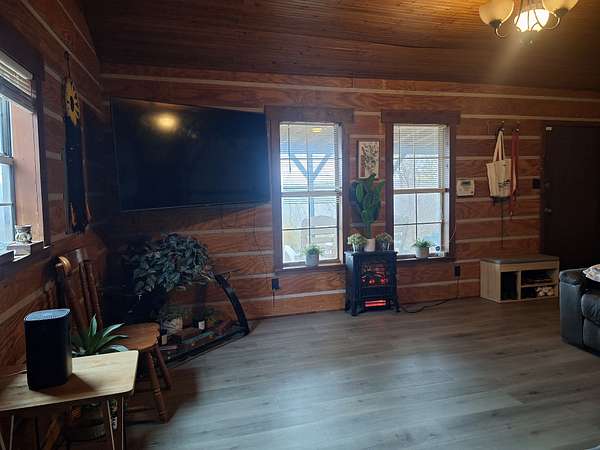 Est $981/moWHAT A VIEW from the front porch!!! Enjoy the seclusion of 6.8 acres along with the beautiful view that comes with the rustic cabin with new flooring & new metal roof. Wood heater and water well with manual pump included. Blueberry bushes, garden spot, good pond & good spring on the property. Storage building & storm shelter/root cellar. A must see to appreciate.