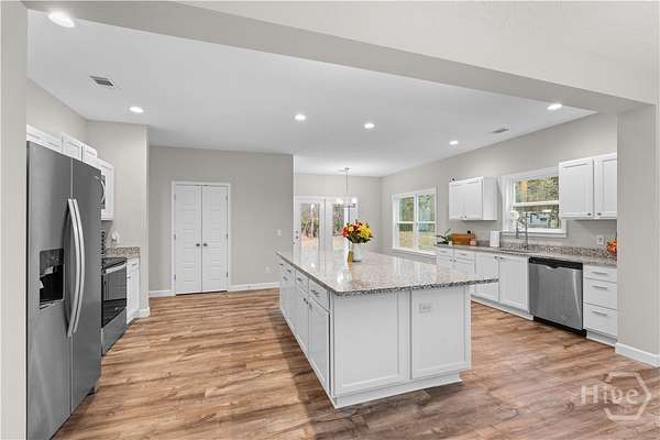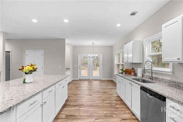 This beautifully built home, completed in 2023, offers the perfect blend of modern design and peaceful country living. Featuring five bedrooms and two and a half bathrooms, the layout is thoughtfully designed with two bedrooms located on the main level and three additional bedrooms upstairs, providing flexibility for guests, family, or home office space. The open-concept main living area is ideal for both everyday living and entertaining, anchored by a stunning kitchen with granite countertops throughout and a large island that offers abundant storage. Situated on 1.83 acres, the property is surrounded by mature trees that provide a sense of privacy while still keeping you close to nearby towns. This home offers a country setting without feeling remote, located just 11 miles from Glennville, 15 miles from Ludowici, 15 miles from Hinesville, and 58 miles from Savannah. It is an excellent opportunity to enjoy space, comfort, and modern finishes in a convenient location.