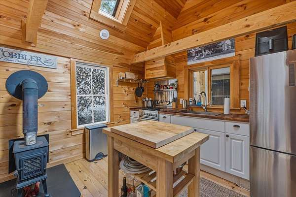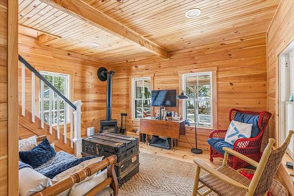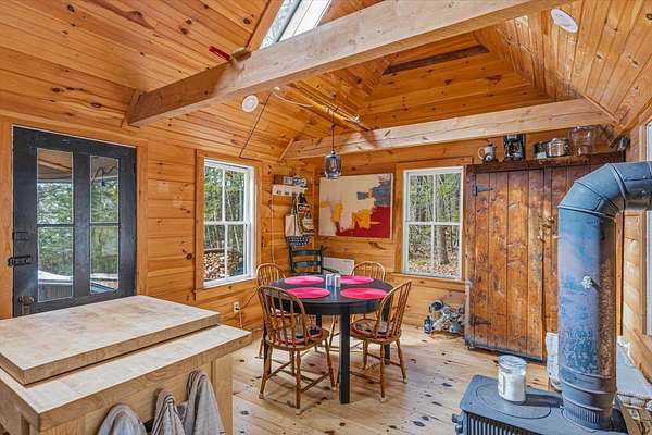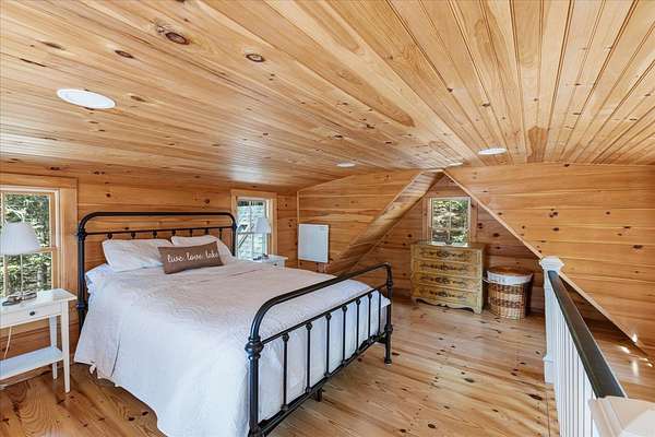 Nestled on the shores of beautiful Lake Skatutakee, this charming waterfront cottage offers the perfect lakefront retreat. Set on a spacious and rare 2 acre lot, the property provides an exceptional level of privacy and room to enjoy the outdoors, which is uncommon for lakefront living. With 858 sq ft of thoughtfully designed space, this 2 bedroom, 1 bath home combines cozy comfort with timeless appeal. The private primary bedroom offers a peaceful retreat, while the second bedroom is located in a loft, adding to the home’s charming cottage feel. Renovated in 2017 and 2018, the property features updated finishes while maintaining its classic character. Inside, two wood stoves provide warmth and ambiance, and a sunroom offers the perfect place to relax while taking in tranquil lake views. Step outside onto the spacious deck, ideal for entertaining or simply enjoying the waterfront setting. The backyard features beautifully done stonework, a fire pit for gathering under the stars, and an outdoor shower completes the quintessential lake life experience after a day on the water. Whether you are seeking a seasonal getaway or a serene escape, this delightful cottage at 199 Hancock Road offers a rare opportunity to own a slice of lakeside paradise in the heart of Harrisville.