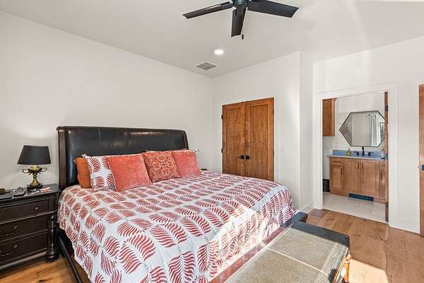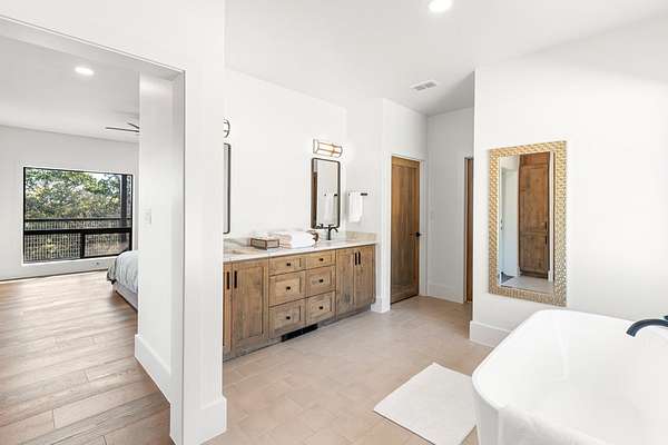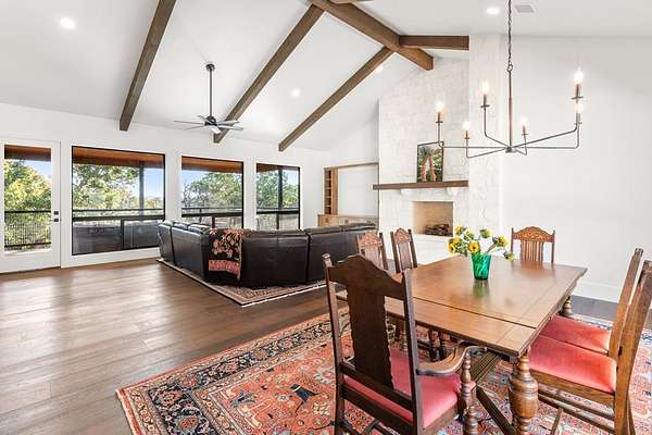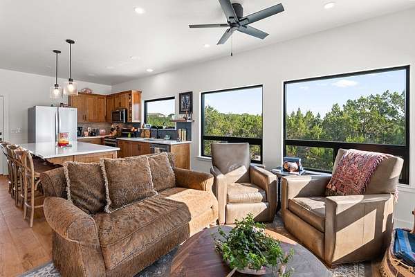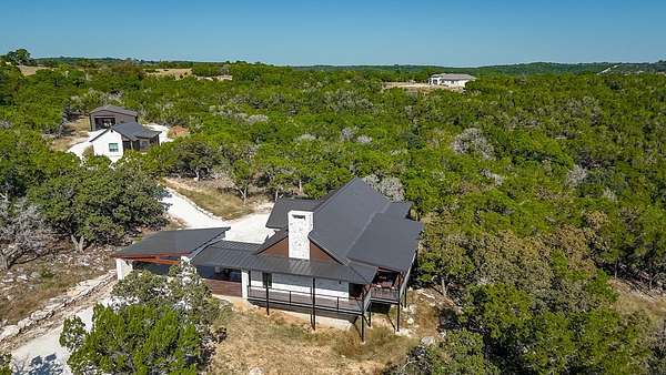 Nestled within an exclusive gated community, this extraordinary 15-acre estate offers unmatched privacy, long-range views, and refined modern living across three newly constructed contemporary structures. The main residence is a beautifully designed one-bedroom home with a dedicated office, featuring an expansive great room with soaring ceilings, a stunning rock fireplace, and walls of windows that bring the outdoors in. A spacious, covered porch extends your living area outside, complete with an outdoor kitchen, lounge space, and even a private outdoor shower--perfect for soaking in the serenity of nature. The guest house offers ultimate comfort and privacy with two bedrooms, each with its own ensuite bath, plus a full kitchen, living area, and breathtaking views--ideal for hosting friends or extended family. The third structure is a versatile metal building with a stylish studio or additional guest suite, full bath, generous porches, and a patio that captures the property's most dramatic vistas. Whether you're seeking a peaceful full-time residence, a weekend getaway, or a multi-generational compound, this property delivers luxury, flexibility, and tranquility. The metal building includes two RV hookups--one 30 AMP and one 50 AMP. Additionally, the property features a 16,000-gallon water storage tank and a plumbed water catchment system.