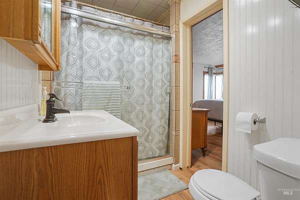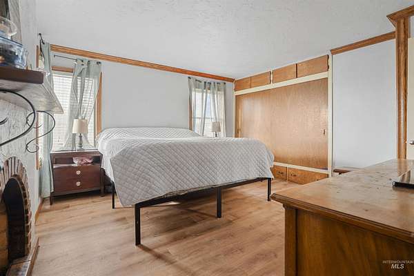 This unique 3-bedroom, 2-bath home with a loft offers the perfect blend of rustic charm and spacious living. Step inside to a stunning rock room featuring beautiful Oakley rock throughout and rich exposed wood, creating a warm, cabin-like atmosphere. The living spaces are open and generously sized, providing comfort and flexibility for everyday living or entertaining. Outside is where this property truly shines. The impressive shop includes three oversized bays large enough to accommodate three semis, complete with air lines throughout, 220-volt plugs, and a bathroom--ideal for commercial use, hobbies, or serious storage. The land is thoughtfully set up with a metal round pen, pastures designed for rotational grazing, a chicken coop, garden area, wood shed, and full water rights. Unwind on the covered patio with a porch swing and enjoy the peaceful rural setting. This property offers functionality, charm, and room to grow--perfect for those seeking space, versatility, and a true country lifestyle.