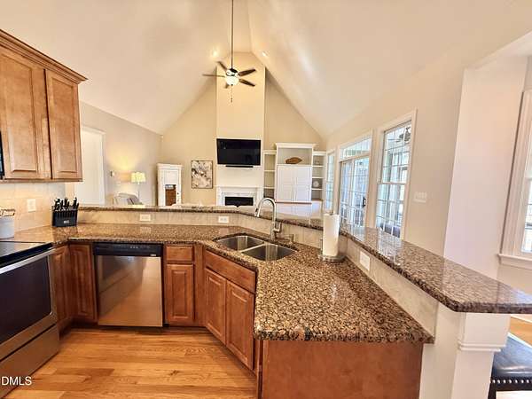 - Bookcases, Cathedral Ceiling(s), Ceiling Fan(s), Eat-In Kitchen, Entrance Foyer, Granite Counters, High Ceilings, Primary Downstairs, Separate Shower, Walk-In Closet(s)