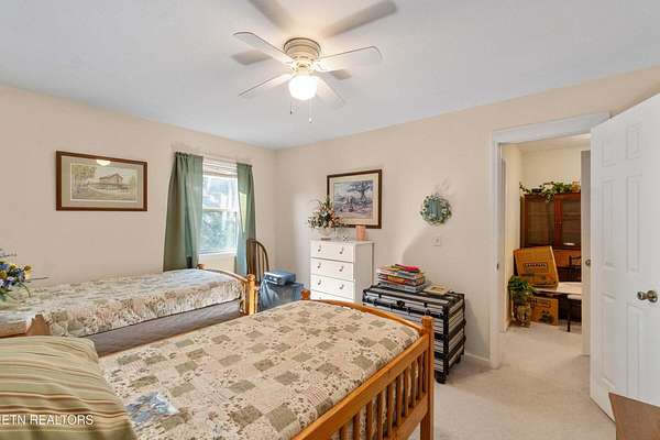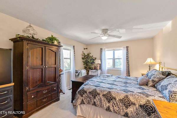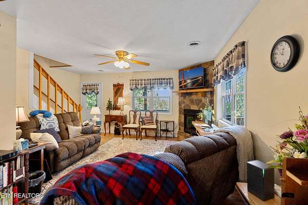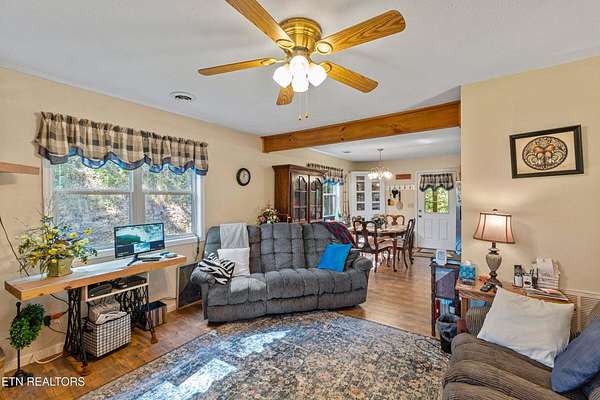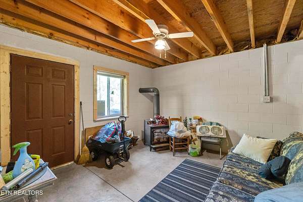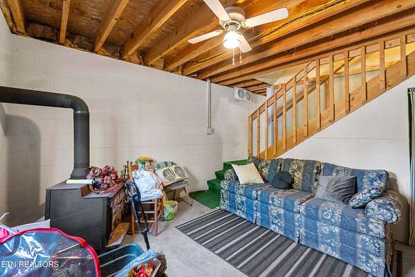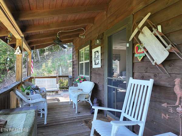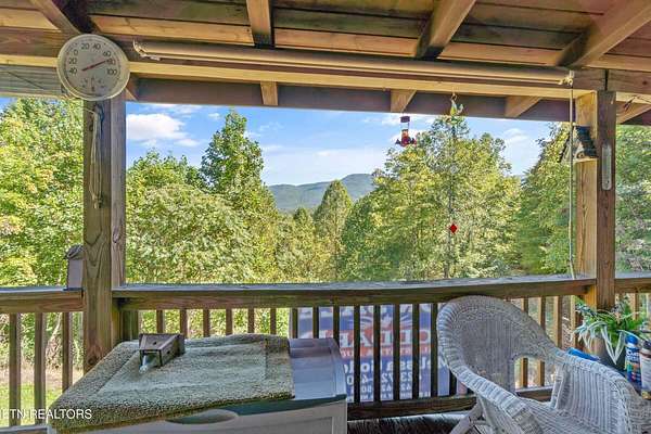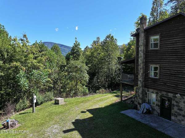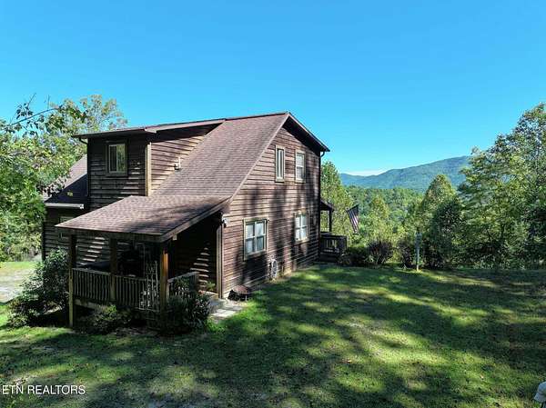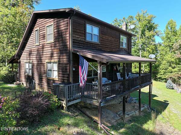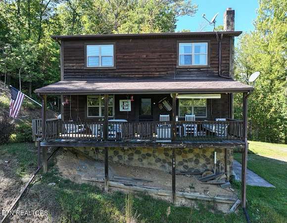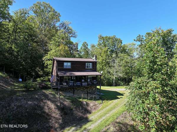 Del Rio, Tennessee - Cocke County Located off Pear Tree Way, this beautiful custom-built two-story log cabin sits on a partially finished basement and offers exceptional privacy with stunning mountain views. Enjoy the peace and beauty of nature from the full-length covered front porch, the perfect spot to relax and take in the scenery. The property sits atop a ridge with a gentle, easily accessible driveway. Utilities include underground power to preserve the views, a private well, and a state-approved septic system. The 12.71-acre tract provides abundant space and is full with wildlife. Inside, the main level features an open floor plan that combines the living room, dining area, and kitchen. The living room showcases a gorgeous gas log fireplace with a remote for convenience. A Goodman heat pump provides efficient heating and air conditioning. The main level also includes a bedroom with mountain views, a full bathroom, and a laundry room. The staircase, crafted from natural wood, leads upstairs to a spacious landing and additional bedrooms. The first upstairs bedroom offers breathtaking mountain views and has been used as a guest suite, creating a private mountain-top retreat for visitors. Two more bedrooms and a full bath complete the upper level. The full basement includes a drive-in garage, a cozy den with a wood-burning fireplace, a half bath, a workshop, and ample storage space. This home has WiFI provided by Newport Utilities. This home has been exceptionally maintained and would make an ideal permanent residence or a relaxing vacation getaway. Offered at $574,000