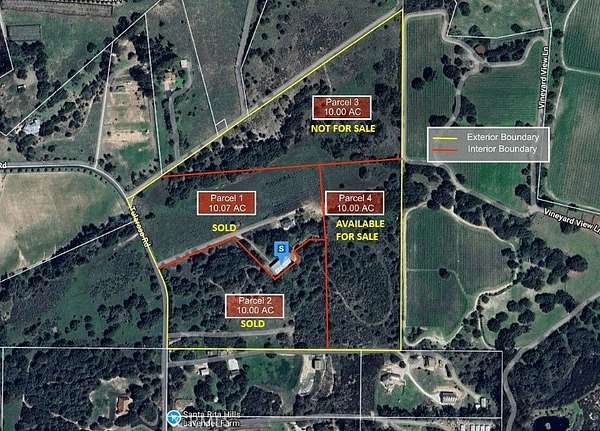Surrounded by natural beauty with a vineyard to the east and lavender farm to the south. Easy access to Highway 246 and local towns, the parcel offers both seclusion and connectivity. Located just 15 minutes from Buellton and Solvang and within 40 minutes of Santa Barbara, this property offers convenient access to the renowned La Purisima Golf Course in Lompoc within 5 minutes, coastal recreation and nearby hiking trails.