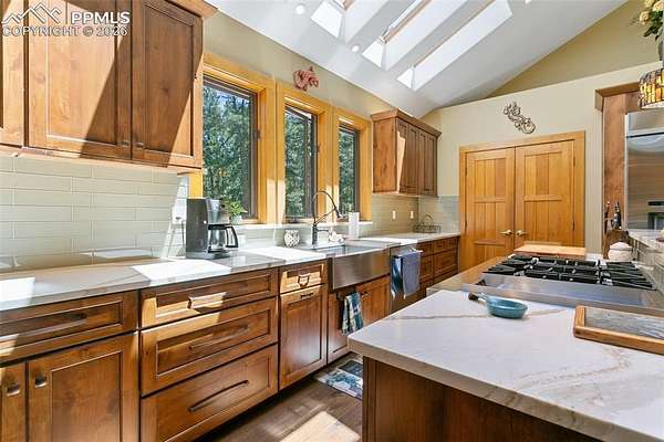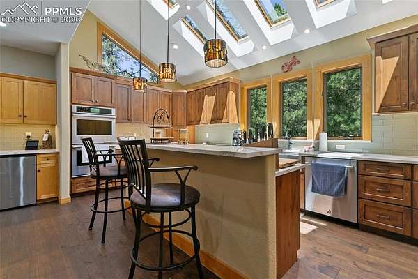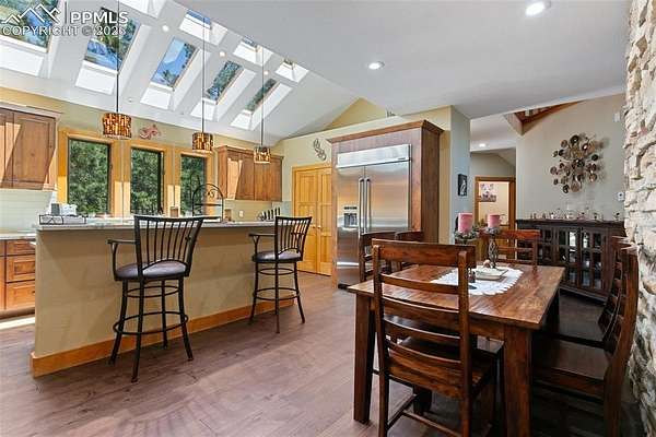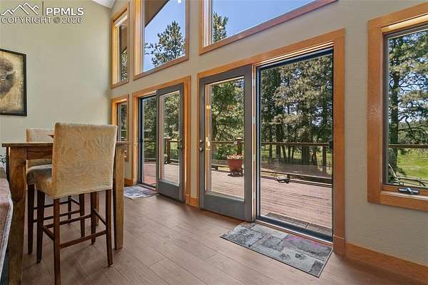 Remodeled Luxury Home on 7.65 Acres with Private Pond and Scenic Views. Nestled in the peaceful, community of Elk Creek Ranches, this beautifully updated home offers a rare blend of refined living and Colorado wilderness on 7.65 acres. The property features a serene pond, expansive meadow, mature trees, and a wrap-around deck perfect for enjoying the sounds of nature and watching local wildlife. Inside, the home has undergone a stunning transformation. The fully remodeled gourmet kitchen showcases custom cabinetry, new countertops, upgraded appliances, and an open layout ideal for entertaining. The bathrooms have also been completely redone with high-end finishes, complementing the brand new engineered hardwood flooring throughout much of the home. The great room remains a showstopper with soaring vaulted ceilings, clerestory windows that flood the space with natural light, a floor-to-ceiling stone fireplace, and radiant heated floors. The main-level master retreat includes a private walkout, oversized walk-in closet, and a newly renovated bath with double vanity and walk-in shower. Other highlights include a large loft overlooking the great room, a dedicated office with built-ins, and a walk-out basement featuring a theater room, exercise space, and two generous bedrooms. The home also includes a 3-car garage with custom wood doors and a long circular driveway. Whether you're relaxing on the porch, exploring the pond, or simply enjoying the privacy of this exceptional setting, this is Colorado living at its finest-all with convenient access to both Colorado Springs and Denver via Highway 83.