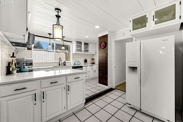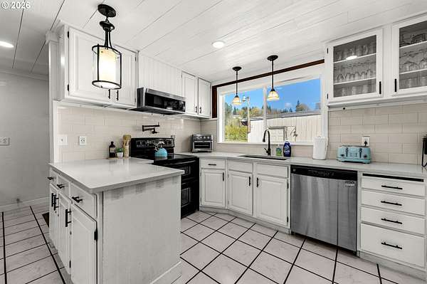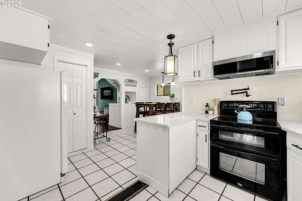- Dishwasher, Free Standing Range, Free Standing Refrigerator, Microwave, Pantry, Pot Filler, Stainless Steel Appliance, Tile