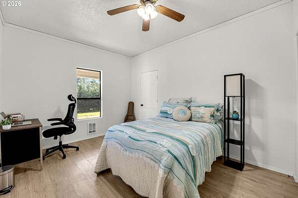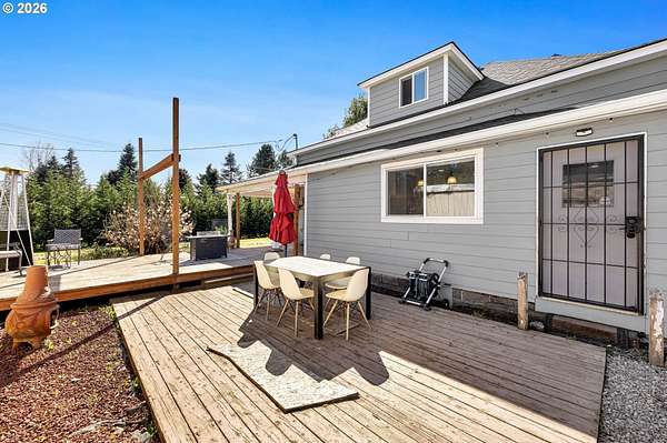 Charming 1910 Craftsman farmhouse set on 2.24 beautiful acres! This 4-bedroom home offers a flexible layout with 2 bedrooms on the main level and 2 bedrooms upstairs, plus a dedicated office space-perfect for remote work or hobbies. The home features 2 bathrooms, one on each level. Enjoy peaceful country living with mature fruit trees including cherry, pear, plum, and apple-ideal for gardening enthusiasts or anyone who appreciates homegrown harvests. Recent updates include a brand-new roof (2025) and new vinyl windows upstairs, blending classic character with modern improvements. Outdoor living is a dream with both a covered deck and covered patio, perfect for relaxing or entertaining year-round. The property also includes a versatile outbuilding with new plumbing and is great for a workshop, storage, or many potential future uses. It also has it's own private driveway. Plenty of parking space with room for RVs, trailers, and more. This unique property offers space, functionality, and timeless charm-don't miss your chance to make it yours!