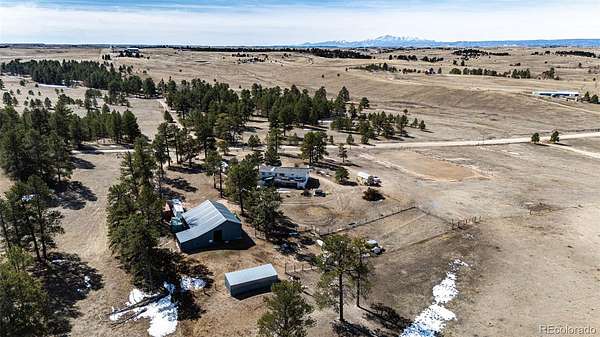 Short sale opportunity! Welcome home to this beautiful 40 acre parcel in an amazing location outside the Elizabeth City limits! This property has a wonderfully secluded feel with mature pines, rolling meadows and dry creek bed. The property is sub-dividable into smaller size lots and has no covenants. Decreed water rights are included and this property is located on a county maintained road. The beautifully updated home is ready for your finishing touches and features a totally remodeled kitchen with Shaker style cabinetry, new stainless steel appliances and stunning quartz countertops. The remodeled home offers upgrades such as Luxury Vinyl Plank flooring, shiplap ceilings and stunning wall fireplace. The walk out basement offers multi generational living with an additional kitchen, two additional bedrooms, family room and full bathroom. New solar panel system offsets the costs of the electricity and home has recently been converted to forced air with new furnace and air conditioning. There is a detached shop/garage with concrete floor that is a mechanics dream and a large 36 x 48 barn with stalls and loft. There are corrals and run pens/paddocks for your 4 legged friends as well as a 100 x 200 graded arena. The property is fenced and cross fenced for livestock. All measurements are approximate.