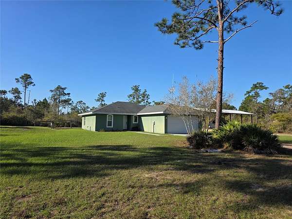 Nestled in the peaceful countryside of Lake Wales, this well-maintained concrete block/stucco home offers the perfect blend of comfort, style, and functionality on 3.2498 gated, partially fenced, acres. Featuring 3 bedrooms, 2 bathrooms, and a 2-car garage, this property provides plenty of space for both everyday living and entertaining. Step inside to find vaulted ceilings and a bright, open feel complemented by stylish paint selections, granite counter tops and open and split bedroom floor plan. The home includes appliances and ceiling fans throughout for added comfort. Durable and attractive finishes include stone-quarry tile in the kitchen and bathrooms, with warm wood flooring throughout the remaining living areas. The layout offers convenience and practicality with walk-in showers and an open laundry area for easy access. Outdoors, you'll find a fenced enclosure—perfect for pets large natural trees, oaks and pines with palmetto bushes offering a natural boundary between neighbors. A standout feature is the detached covered open pole barn with 4 bays—ideal for storing extra vehicles, a camper, or a boat while keeping them protected from the Florida sun. With ample room for outdoor activities, gardening, or future improvements, the possibilities are endless. Enjoy the privacy of country living while remaining just a short drive from shopping, dining, and area lakes known for excellent fishing and recreation. Don’t miss your chance to own this versatile Central Florida property!