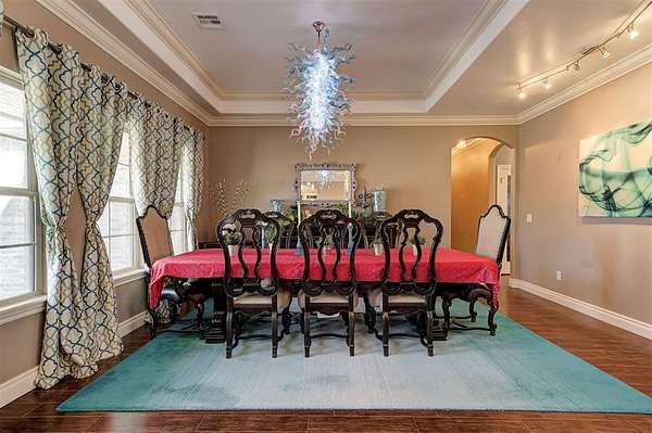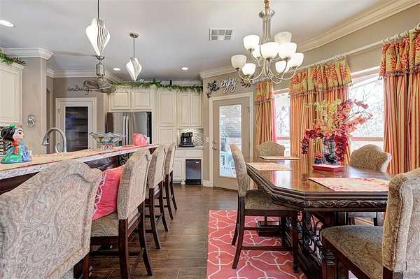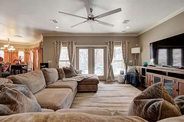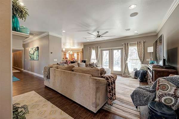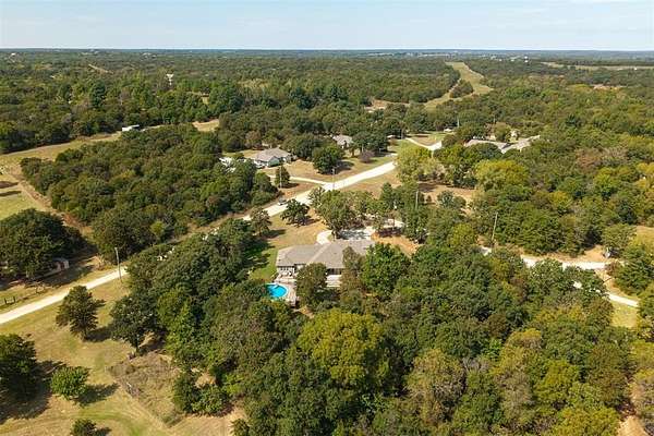 Tucked away on a stunning 2.5-acre wooded lot, this nearly 3,500 sq ft property is absolutely beautiful! Surrounded by mature trees, the property feels like a private retreat with no visible neighborhoods behind you, yet is located within a small acreage community that values peace and seclusion. The thoughtfully designed floor plan features 4 bedrooms and 3 and a half bathrooms, ideal for a variety of living arrangements. The spacious primary suite is a true sanctuary, complete with an attached private office, THREE closets, and a large ensuite bathroom. On the opposite side of the home, a separate bedroom wing includes a cozy common area, two bedrooms, and a full bathroom (featuring a ADA compliant walk in shower) perfect for multigenerational living, guests, or a private retreat. Also featured is a tornado safe room for peace of mind during bad weather. Upstairs, you'll find an oversized bedroom or flex space with its own bathroom and walk-out attic access, offering endless possibilities for a bedroom, game room, home gym, or additional living space. Outdoor living shines with an expansive covered back patio facing east for relaxing evening shade, overlooking an above-ground pool and sunbathing deck. The lush tree line creates a serene, park-like setting that's ideal for entertaining or unwinding in complete privacy as it blocks all neighbors' view. This is a rare opportunity to own a beautiful, private acreage property with a flexible layout and exceptional outdoor living, truly a place to slow down and enjoy the space around you.