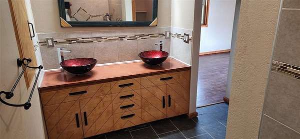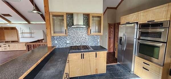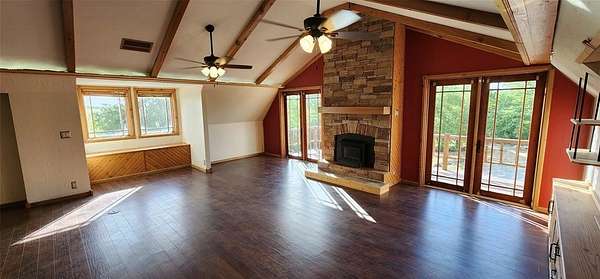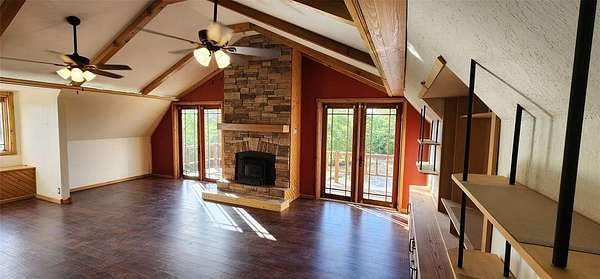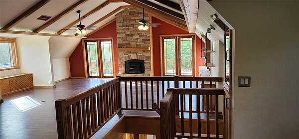 Do you want privacy and seclusion well here it is. This is a wonderful two story log home with many features built by hand. Each door is custom built with real wood. The floors are tile or wood laminate throughout. 2262 Square feet of great living. A utility room with washer and dryer already set up. The down stairs has three bedrooms with a jetted tub in the bath. Garage is like a garage and work shop combined. Upstairs has the kitchen and master bath with living room which has a fire place. From the kitchen window you will have the best view of the surrounding woods, no buildings or cars to look at just trees. There is dumb waiter or lift on the outside to bring supplies up to the second floor. The property around the house is mostly wooded.
