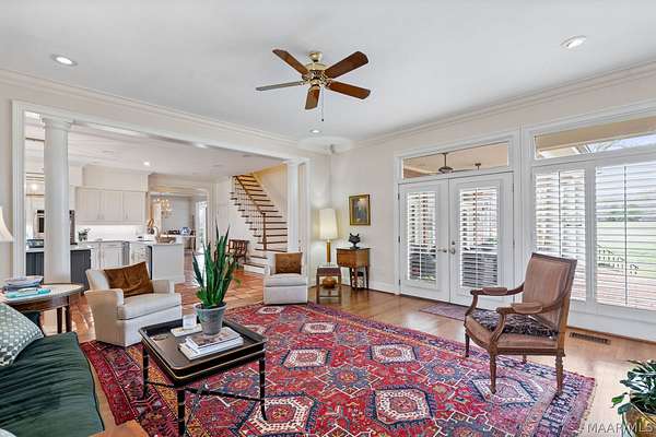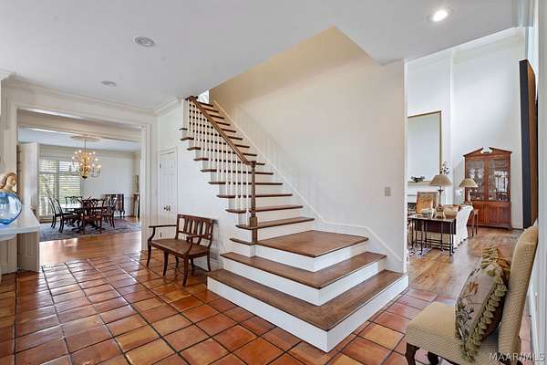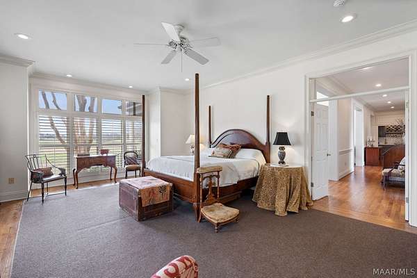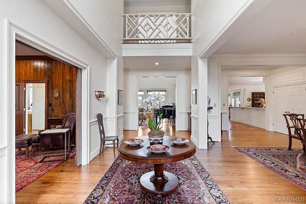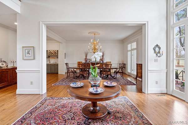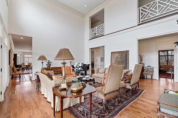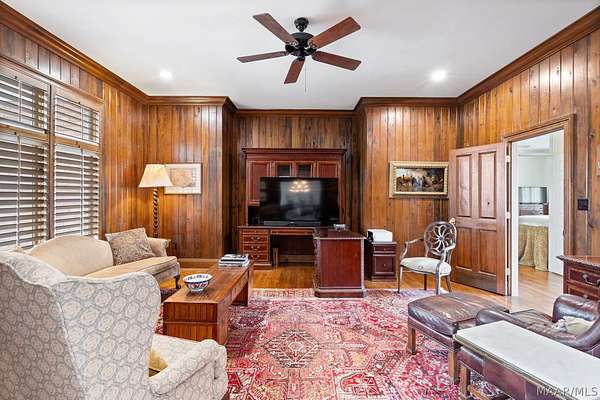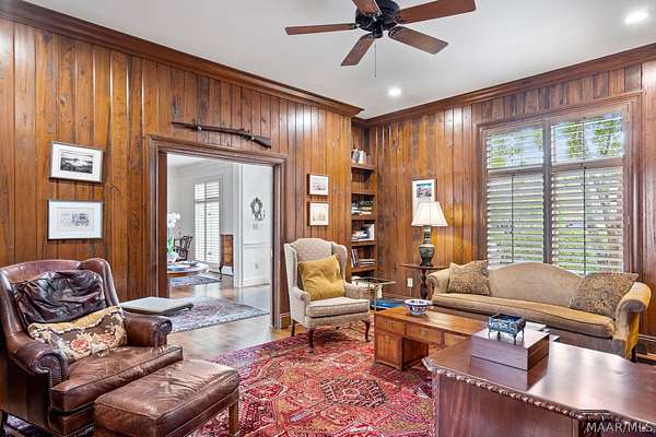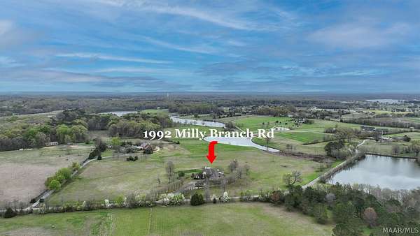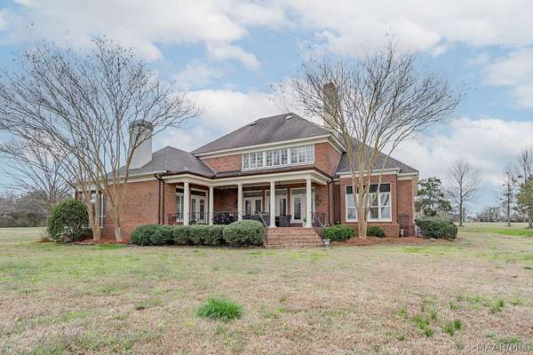 Set on 16 private acres in Pike Road's coveted Milly Branch community, this remarkable estate offers space, character, and an exceptional natural setting rarely found in today's market. With recent updates this home is a one of a kind. A brick walkway framed by manicured landscaping leads to the stately columned entrance, setting the tone for the thoughtful design & craftsmanship found throughout the home. Inside, soaring ceilings and gracious proportions create a welcoming first impression. The main level features a spacious foyer, formal dining room with wet bar, and a beautifully designed kitchen with a large island and breakfast area. Anchored by a striking fireplace, the living space flows effortlessly to the expansive covered back porch, where sweeping views of the surrounding acreage create an unforgettable backdrop for everyday living. The home offers a wonderful balance of open gathering spaces and private retreats. A richly appointed study provides the perfect office or library, while the primary suite is privately situated on the main level with a generous bath & dual large closets. A screened side porch offers another peaceful spot to enjoy the property. Upstairs, a dramatic catwalk overlooks the living area and offers views of the meadow and leads to three spacious guest bedrooms, two additional baths, and flexible bonus space ideal for storage, hobbies, or a small office. Large laundry room includes sink and abundant cabinetry and the 3 garage provides ample room for vehicles and equipment, while the property itself offers endless possibilities to enjoy the outdoors. Residents of Milly Branch also enjoy access to a beautiful 58-acre lake, just a short walk or golf cart ride away, perfect for fishing, relaxing by the water, or taking in the quiet beauty of this special neighborhood. A rare opportunity to own a truly distinctive Pike Road property with acreage, architectural character, and access to one of the area's most treasured private fishing lakes.