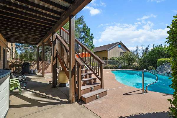 Welcome to 19924 Woodchuck Trail--a beautifully crafted 3 bedroom, 3 bath custom home offering 2,250 sq ft of comfortable living space. Perched on 3.5 private acres, this home features breathtaking views, peaceful seclusion, and thoughtful design throughout. Enjoy mornings on the expansive deck overlooking the sparkling in-ground pool. A detached shop/ADU nearby offers 1 bedroom 1 bath and is ideal for guests, a rental, or your next project space. Owned solar helps offset utility costs, and with Shasta Lake just minutes away, recreation is right around the corner. Come experience this one-of-a-kind property for yourself!