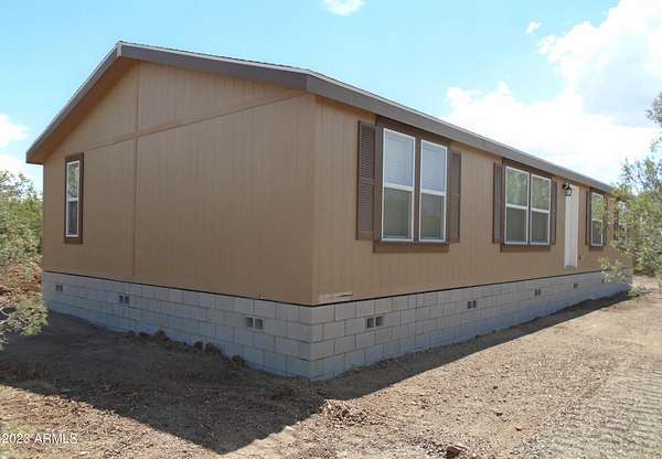 Brand new 2022 CAVCO DURANGO Model DN-2856A. Located on a nicely treed 10 acre lot. All new flooring, stainless steal appliances, upgraded cabinets and plenty of storage! Master bedroom is split from additional bedrooms. Great views to the east towards Bill Williams Mountain. This home is connected to APS grid and is about 1 mile from paved road. Home backs up on the west side lot line to 640 acres of state land preserving your views & privacy for years to come. Cumberland Rd is just 2 miles North of Ash Fork where you are about 45 minutes to Flagstaff or Prescott. The home is located in the NW portion of the lot allowing plenty of of privacy in the form of tree coverage from Cumberland Rd. Plenty of space to build a barn for your horses or other livestock. Seller carry available
