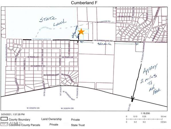 Take Double A Ranch Rd North out of Ash Fork approx 2 miles to Cumberland Rd. Go West on this County maintained road, just under 1 mile to West lot line / driveway on the North side of Cumberland.
