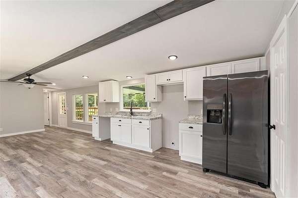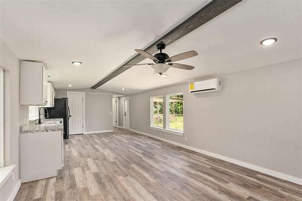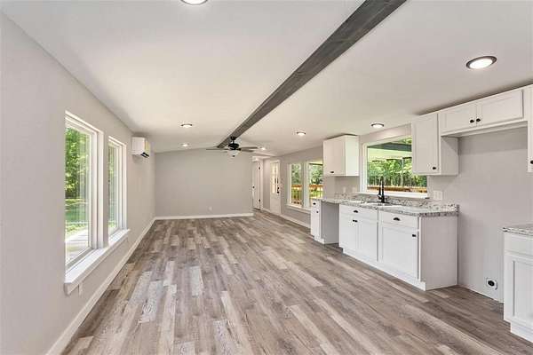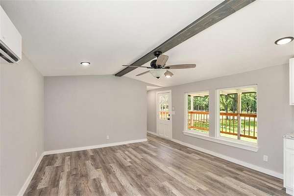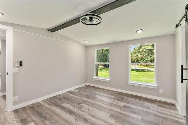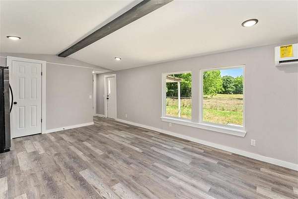 Great opportunity to own a remodeled single-wide home on 2 acres of land with endless potential. Great location walk to lake. This home has been totally updated, featuring a new metal roof, board-and-batten siding, insulation, windows, HVAC, front porch railing, electrical and plumbing systems, sheetrock, flooring, lighting, kitchen cabinets, and fully updated bathrooms. Refrigerator included.
