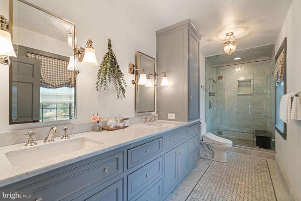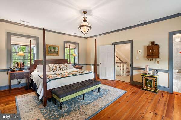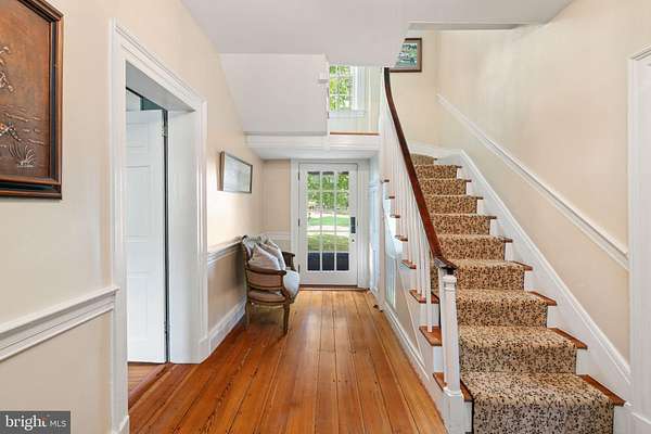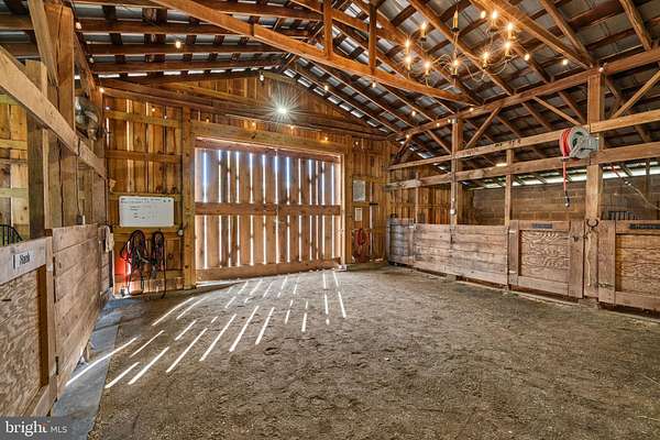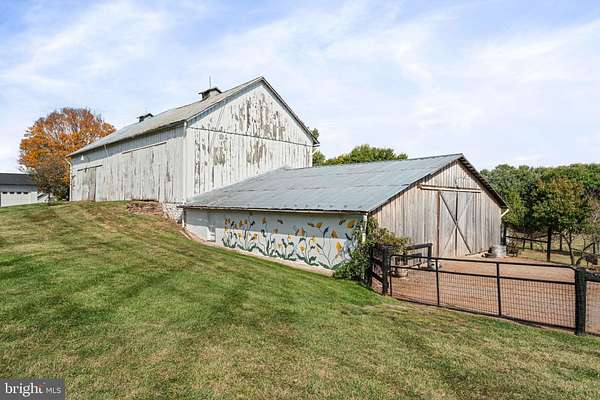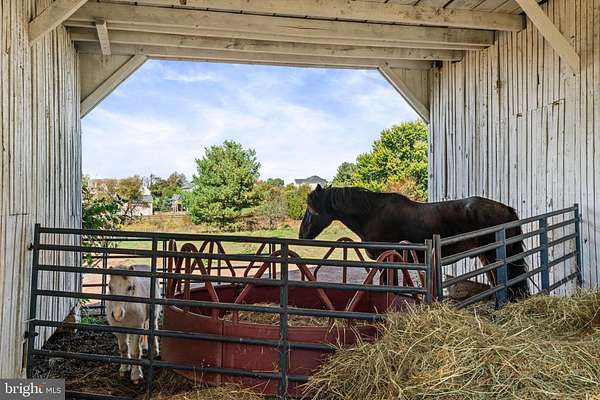 Welcome to "Greenland Farm," a remarkable 12.56-acre farmette. This extraordinary property preserves its colonial character while seamlessly incorporating modern-day amenities for contemporary living. As you make your way up the picturesque driveway-passing the original stone springhouse and the newly added circular drive-you're welcomed by the inviting front porch. The home spans over 4,700 square feet across four beautifully finished levels, offering four spacious bedrooms and four and a half bathrooms. On the grounds, you'll find a two-story frame and stone bank barn featuring five stalls and two chicken coops-perfect for equestrian or hobby farm pursuits. Car enthusiasts will love the 48' x 72' metal shop (built in 2012), complete with three bay doors (10 ft. high x 16 ft. wide), electric service, two hydraulic automobile lifts, and a water hydrant. An additional 18.5' x 60.5' small shop, originally a machine shed, has been converted into five bay garages with concrete slabs, electricity, and a metal roof. In total, the property offers a two-car attached garage and eight additional garage bays across the outbuildings. Adding to the estate's charm is a 30' x 30' corn crib with a frame exterior, metal roof, and original stone pier foundation. At the back corner of the property, a large scenic pond provides a tranquil setting for birdwatching and relaxation. Inside, the home exudes timeless craftsmanship. The foyer opens to wide-plank wood flooring that flows throughout the main and second levels. To the left, a library with built-in bookshelves provides a quiet retreat, while to the right, a family or keeping room with a decorative fireplace offers a welcoming gathering space. The chef-inspired gourmet kitchen, which has its own entrance, is truly the heart of the home-featuring two farmhouse sinks, a large granite island, a six-burner commercial-grade range, and a fireplace. From the spacious eat-in kitchen, you can access the dining room and living room, both offering breathtaking views of the grounds and outbuildings. From the dining room, step into a brick-floored garden room-a perfect spot for casual dining or enjoying an evening glass of wine. Beyond the custom French doors, the patio and fenced backyard invite you to relax among butterfly gardens and enjoy the expansive pastoral views. The main level also includes a guest suite with ADA accessibility, featuring two cedar closets and a luxurious bathroom with custom tile, wainscoting, a handcrafted vanity, and a walk-in glass shower. A laundry room completes the first floor for added convenience. Upstairs, the owner's suite offers a serene escape with an oversized dressing room/retreat, complete with built-in dressers, granite countertops, and abundant storage for all four seasons of your wardrobe. The updated en suite bath features custom tilework, wainscoting, and a walk-in shower with glass door. Two additional bedrooms on this level each feature private bathrooms, and a second laundry area is conveniently located near the back staircase leading to the kitchen. The fourth level offers a den or potential fifth bedroom with a half bath, while the remodeled lower level provides a spacious recreation room ideal for entertaining or relaxing. With its blend of historic integrity, modern upgrades, and unmatched amenities, Greenland Farm is a truly exceptional property-offering a one-of-a-kind opportunity to own a piece of history while enjoying luxurious country living.